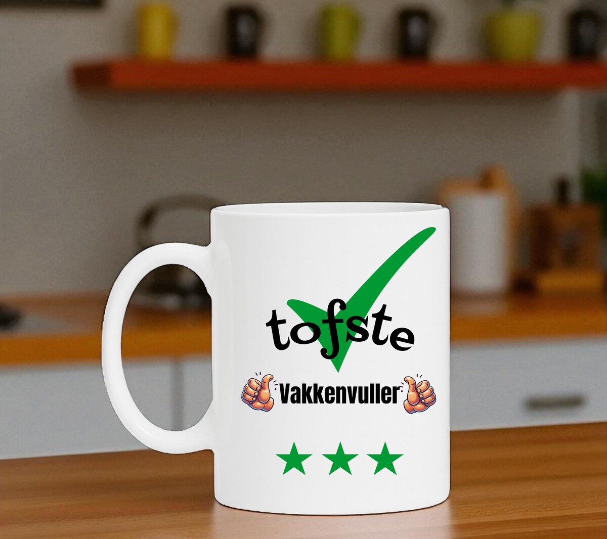 Een leuk kado voor de tofste Vakkenvuller. Leuk om cadeau te geven bij een verjaardag, bedankje of gewoon zomaar. De mok is vaatwasserbestendig en magnetronbestendig en heeft een hoogte van 96mm en een diameter van 80mm.