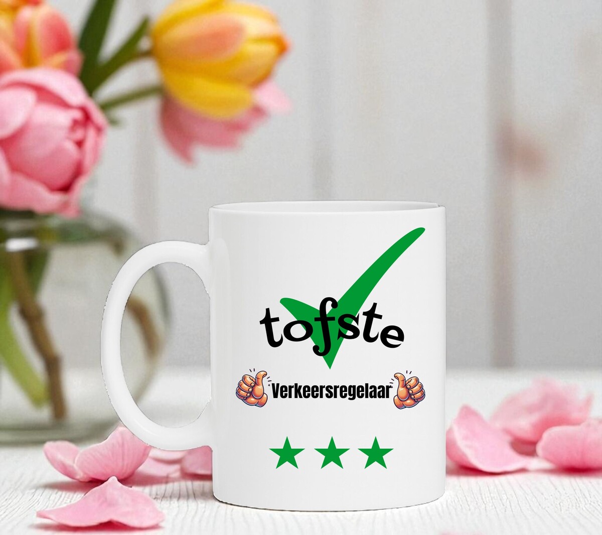 Een leuk kado voor de tofste Verkeersregelaar. Leuk om cadeau te geven bij een verjaardag, bedankje of gewoon zomaar. De mok is vaatwasserbestendig en magnetronbestendig en heeft een hoogte van 96mm en een diameter van 80mm.