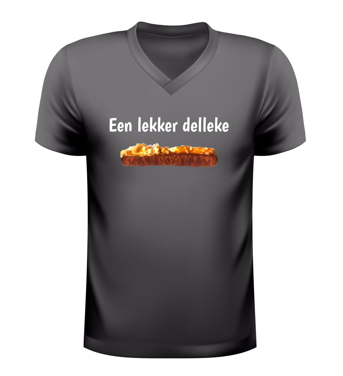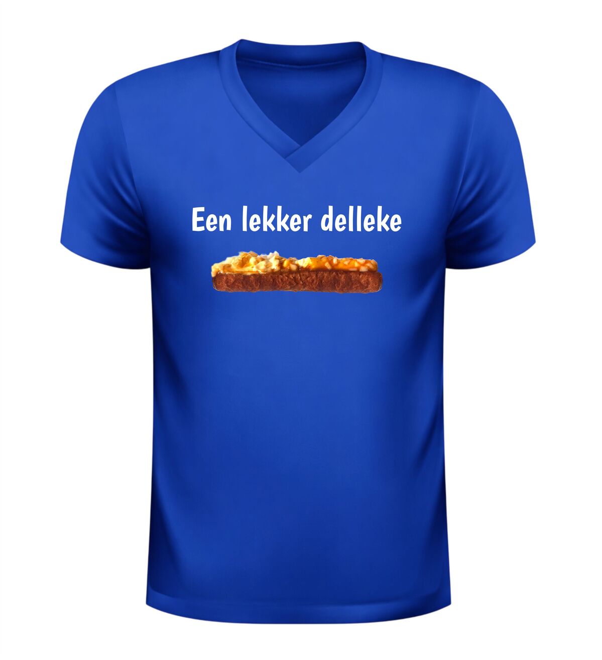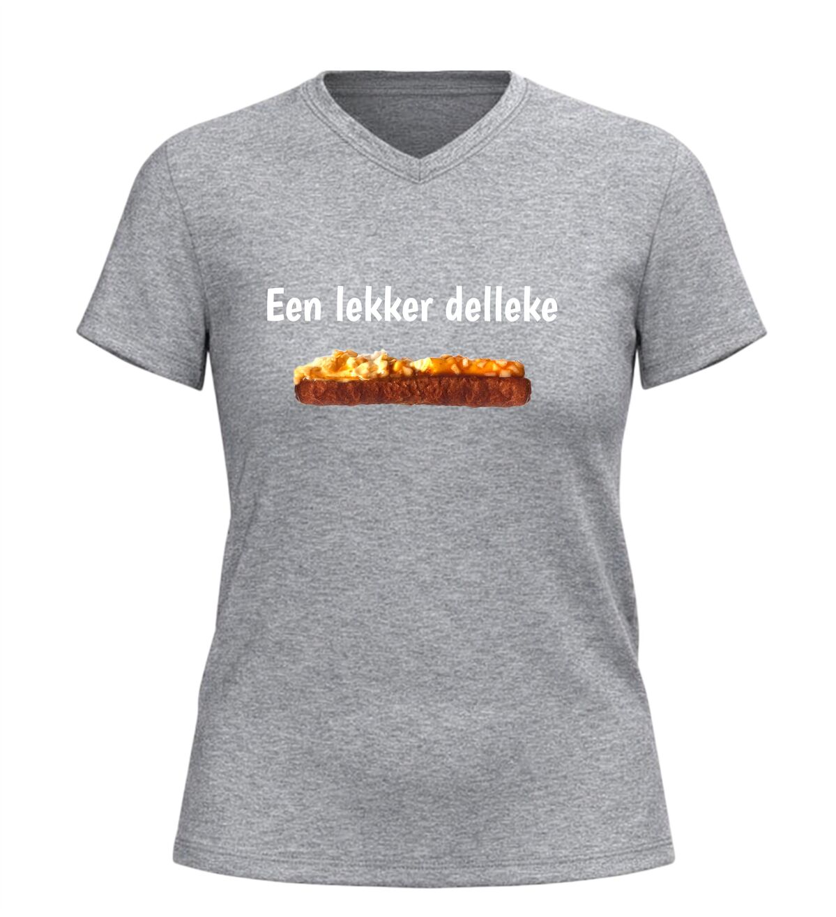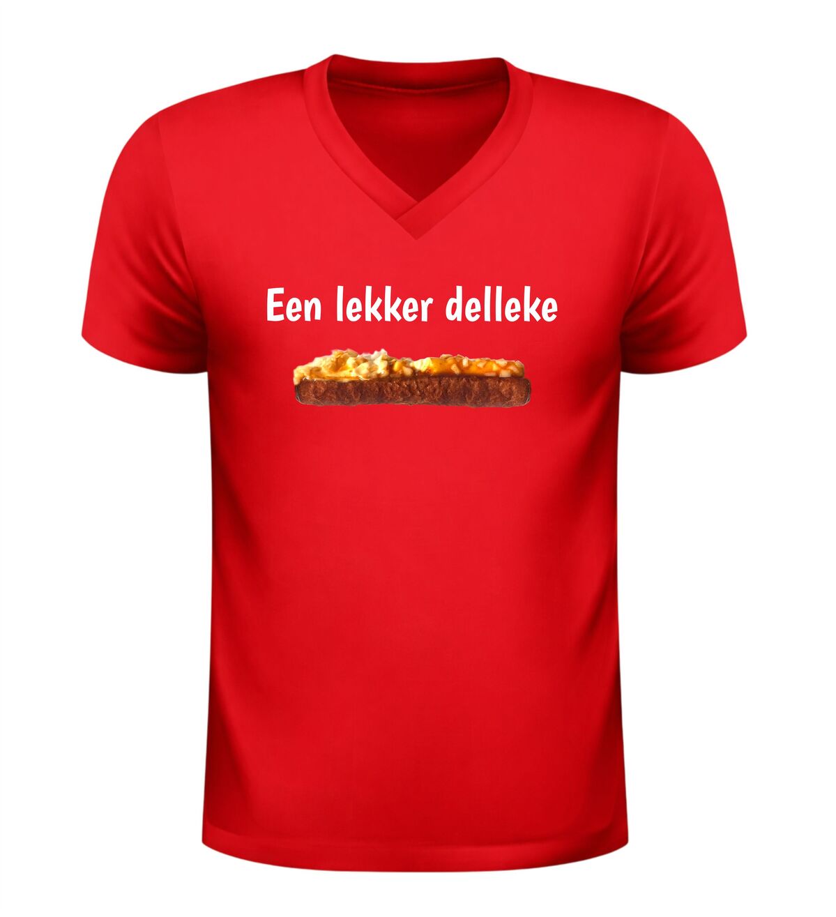 Dit v-hals shirt met de tekst Een lekker delleke en een onweerstaanbare frikandel speciaal is gemaakt voor iedereen die weet dat geluk soms gewoon uit de snackbar komt. Met dit shirt laat je zien dat jij het leven niet te serieus neemt en dat echte Brabantse gezelligheid prima samengaat met een flinke dot mayo, curry en uitjes. Perfect om te dragen op de camping, tijdens carnaval, op een festival of gewoon wanneer je trek hebt in iets lekkers. De comfortabele v-hals zit heerlijk en maakt dit T-shirt ideaal voor lange avonden lachen, borrelen en snacken. Of je nu Brabander bent of gewoon groot fan van de frikandel speciaal, dit shirt zorgt gegarandeerd voor herkenning, humor en trek. Een origineel kledingstuk voor liefhebbers van Brabantse humor, snackcultuur en lekker ongecompliceerd genieten.
