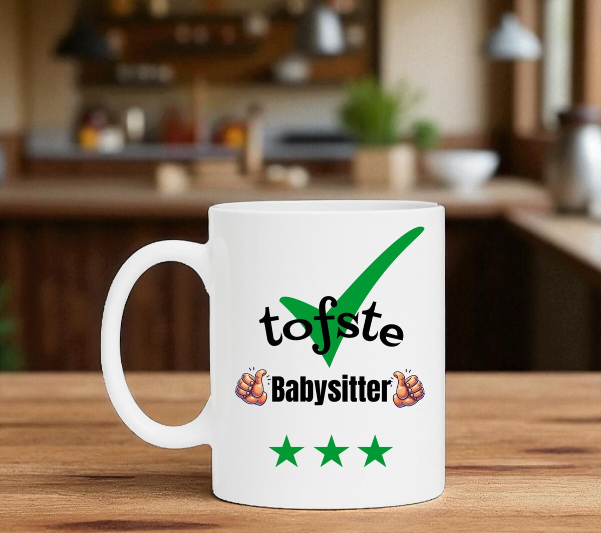 Een prachtig kado voor de tofste Babysitter. Leuk om cadeau te geven en te krijgen, Een tof bedankje of gewoon zomaar een leuk gebaar. De mok is vaatwasserbestendig en magnetronbestendig en heeft een hoogte van 96mm en een diameter van 80mm.