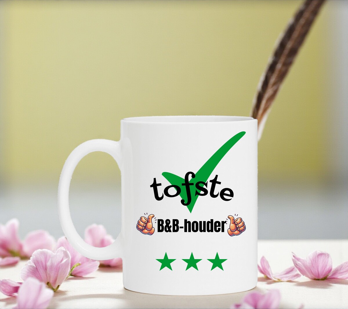 Een prachtig kado voor de tofste B&B-houder. Leuk om cadeau te geven en te krijgen, Een tof bedankje of gewoon zomaar een leuk gebaar. De mok is vaatwasserbestendig en magnetronbestendig en heeft een hoogte van 96mm en een diameter van 80mm.