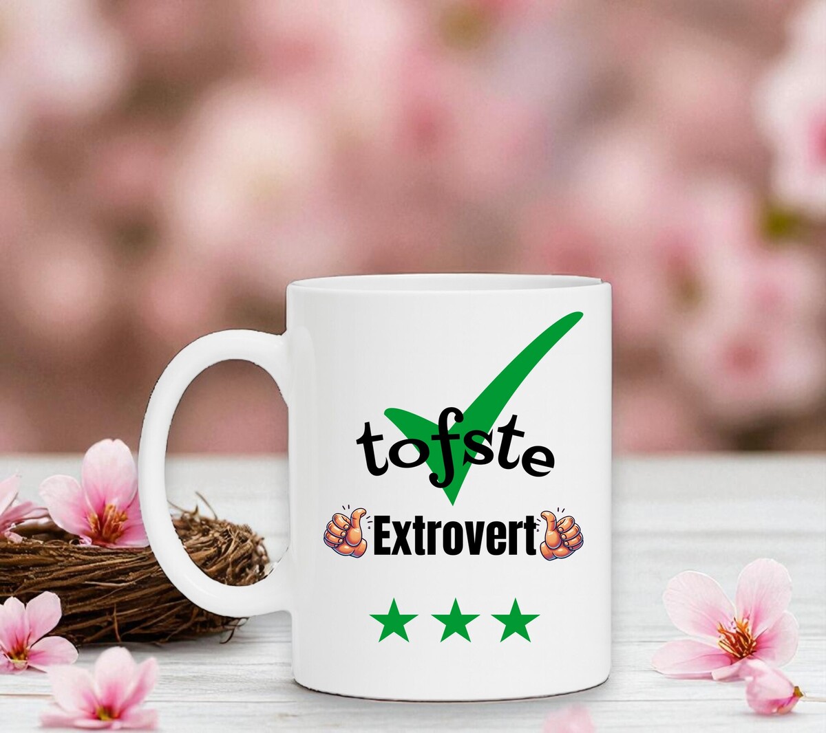 Een prachtig kado voor de tofste Extrovert. Leuk om cadeau te geven en te krijgen, Een tof bedankje of gewoon zomaar een leuk gebaar. De mok is vaatwasserbestendig en magnetronbestendig en heeft een hoogte van 96mm en een diameter van 80mm.