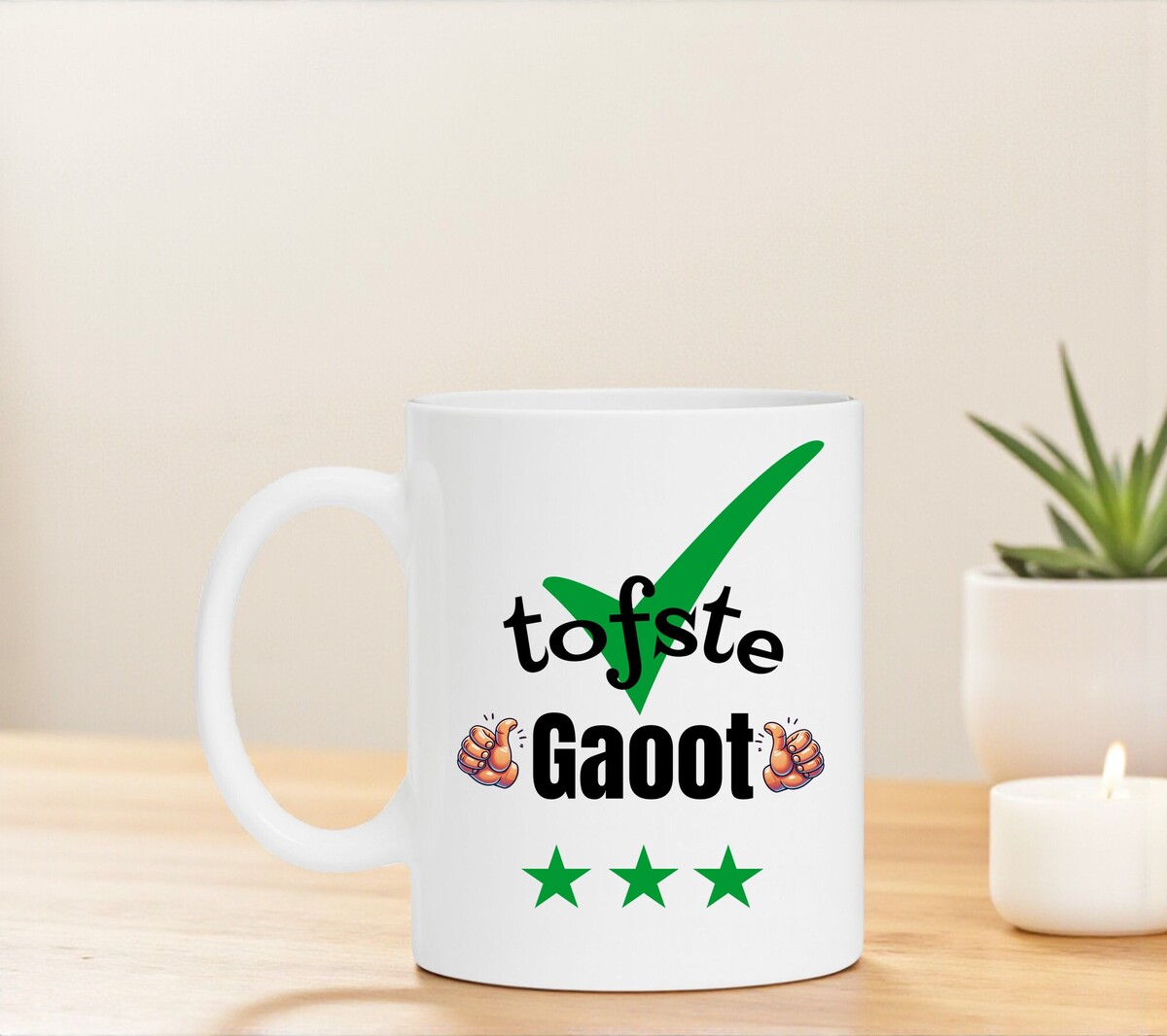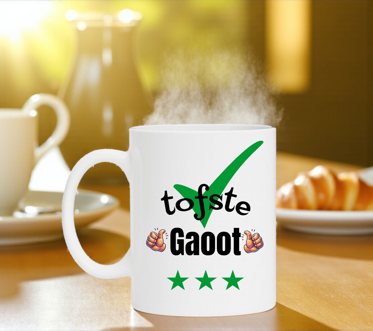 Een prachtig kado voor de tofste Gaoot. Leuk om cadeau te geven en te krijgen, Een tof bedankje of gewoon zomaar een leuk gebaar. De mok is vaatwasserbestendig en magnetronbestendig en heeft een hoogte van 96mm en een diameter van 80mm.