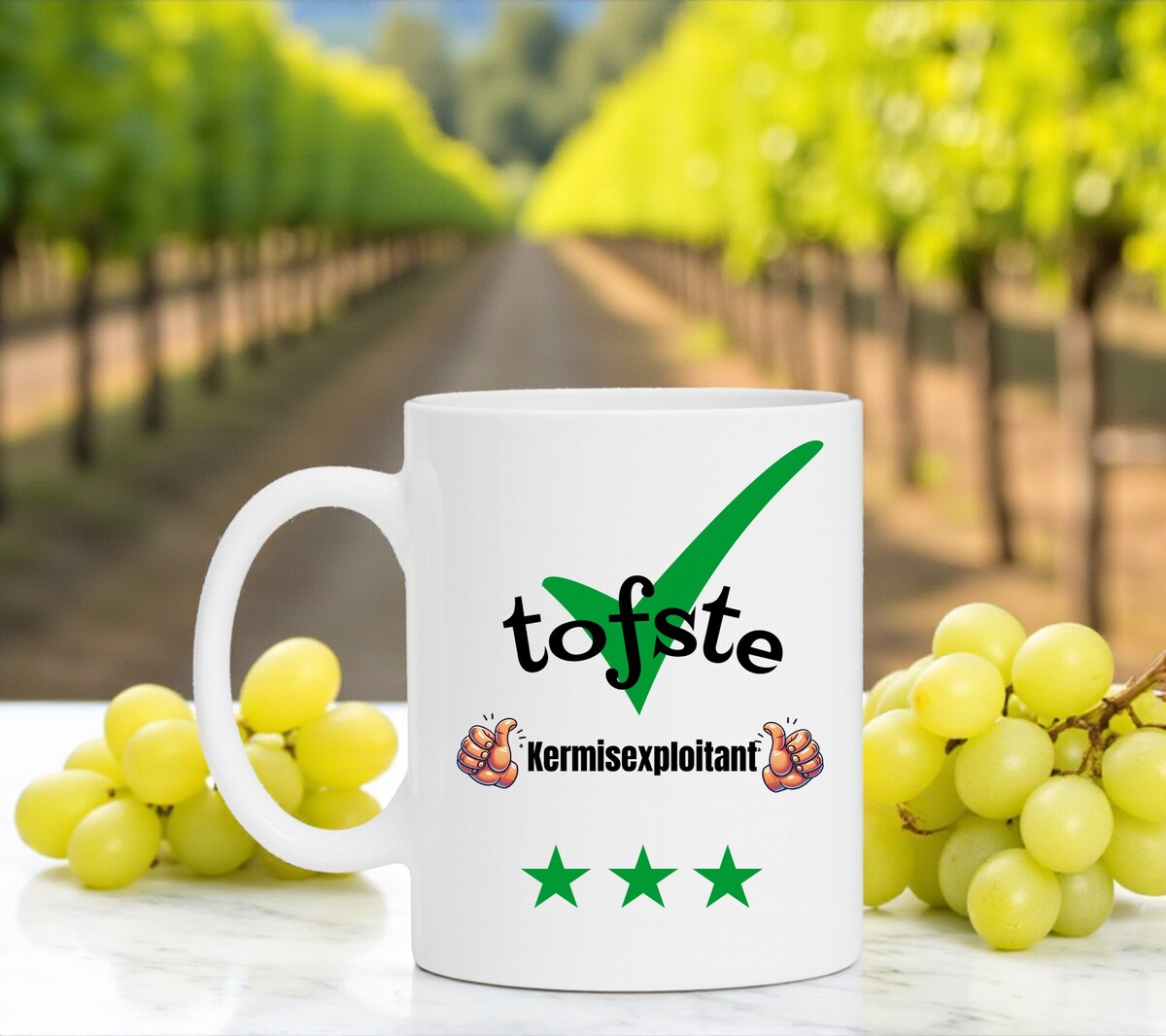Een prachtig kado voor de tofste Kermisexploitant. Leuk om cadeau te geven en te krijgen, Een tof bedankje of gewoon zomaar een leuk gebaar. De mok is vaatwasserbestendig en magnetronbestendig en heeft een hoogte van 96mm en een diameter van 80mm.