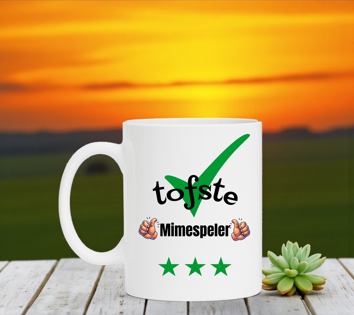 Een prachtig kado voor de tofste Mimespeler. Leuk om cadeau te geven en te krijgen, Een tof bedankje of gewoon zomaar een leuk gebaar. De mok is vaatwasserbestendig en magnetronbestendig en heeft een hoogte van 96mm en een diameter van 80mm.