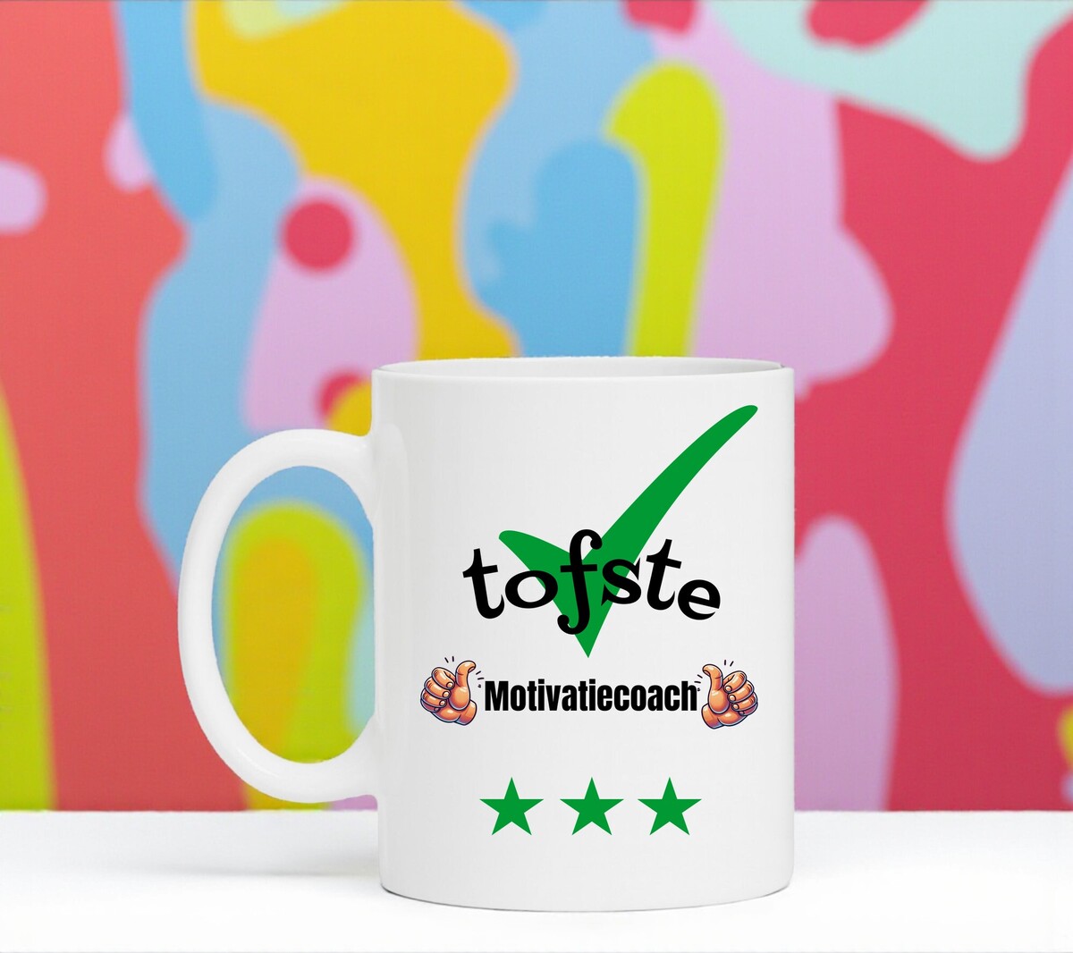 Een prachtig kado voor de tofste Motivatiecoach. Leuk om cadeau te geven en te krijgen, Een tof bedankje of gewoon zomaar een leuk gebaar. De mok is vaatwasserbestendig en magnetronbestendig en heeft een hoogte van 96mm en een diameter van 80mm.