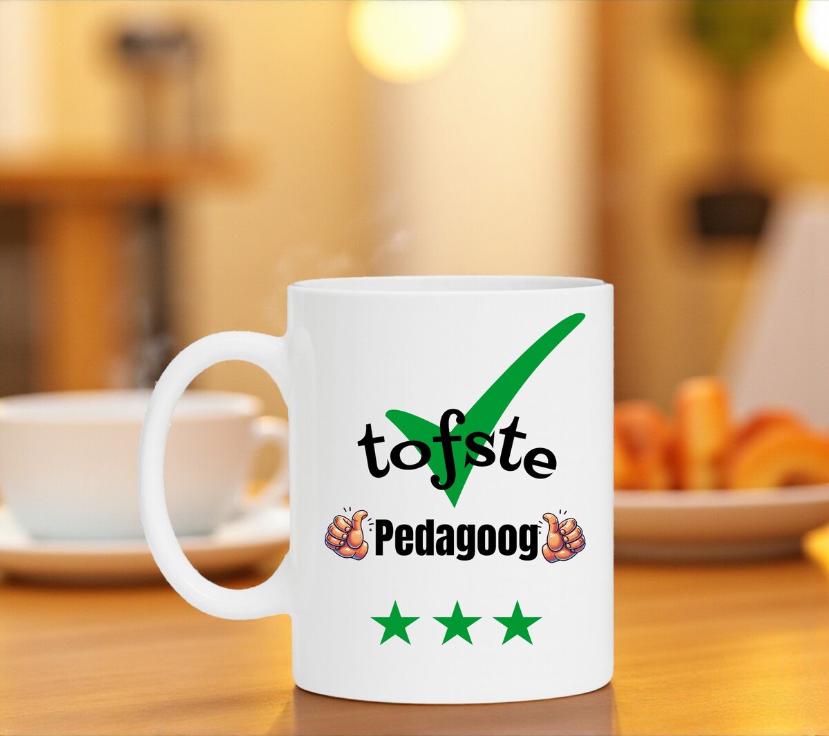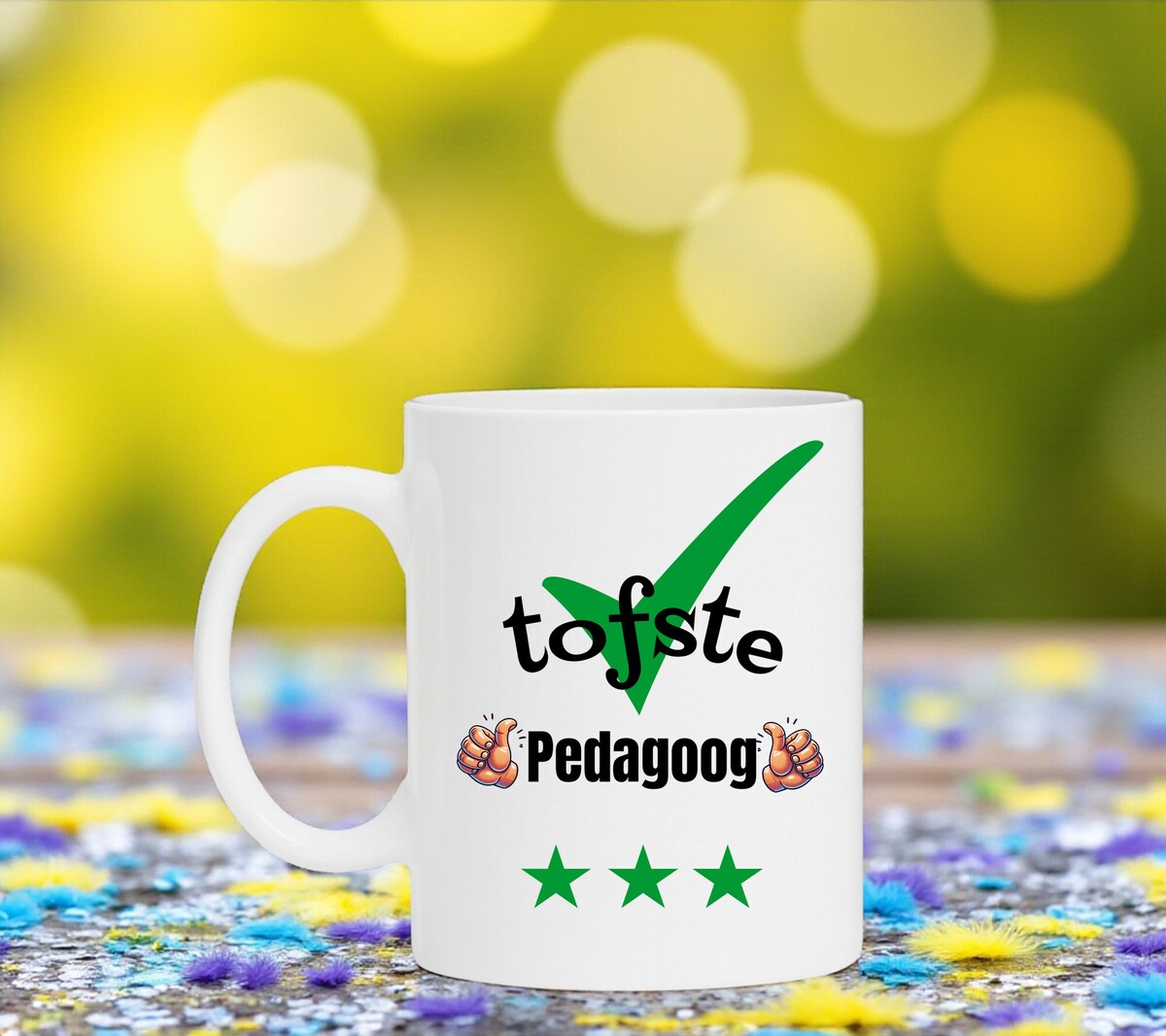 Een prachtig kado voor de tofste Pedagoog. Leuk om cadeau te geven en te krijgen, Een tof bedankje of gewoon zomaar een leuk gebaar. De mok is vaatwasserbestendig en magnetronbestendig en heeft een hoogte van 96mm en een diameter van 80mm.