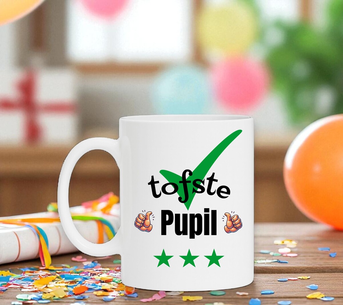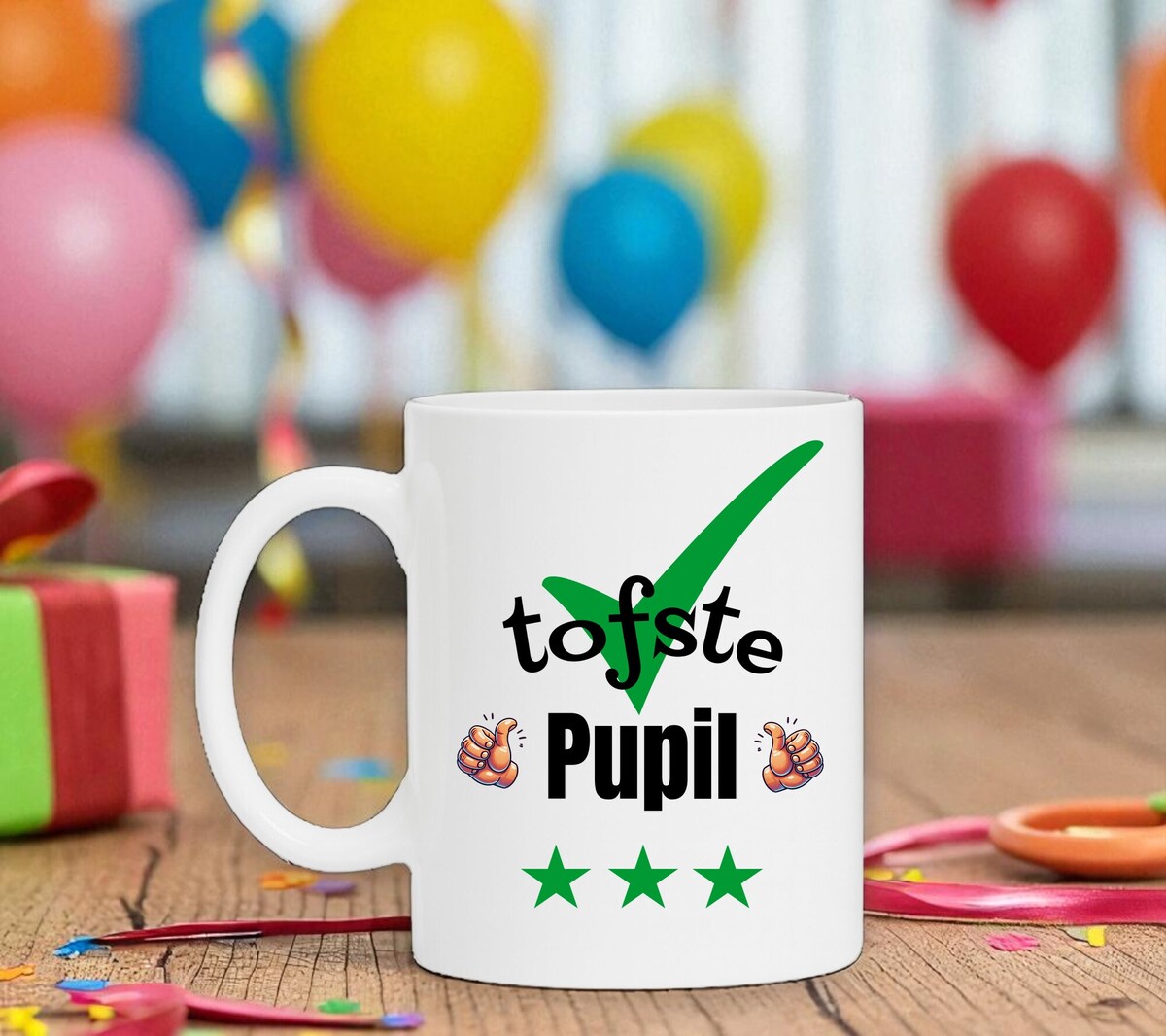 Een prachtig kado voor de tofste Pupil. Leuk om cadeau te geven en te krijgen, Een tof bedankje of gewoon zomaar een leuk gebaar. De mok is vaatwasserbestendig en magnetronbestendig en heeft een hoogte van 96mm en een diameter van 80mm.