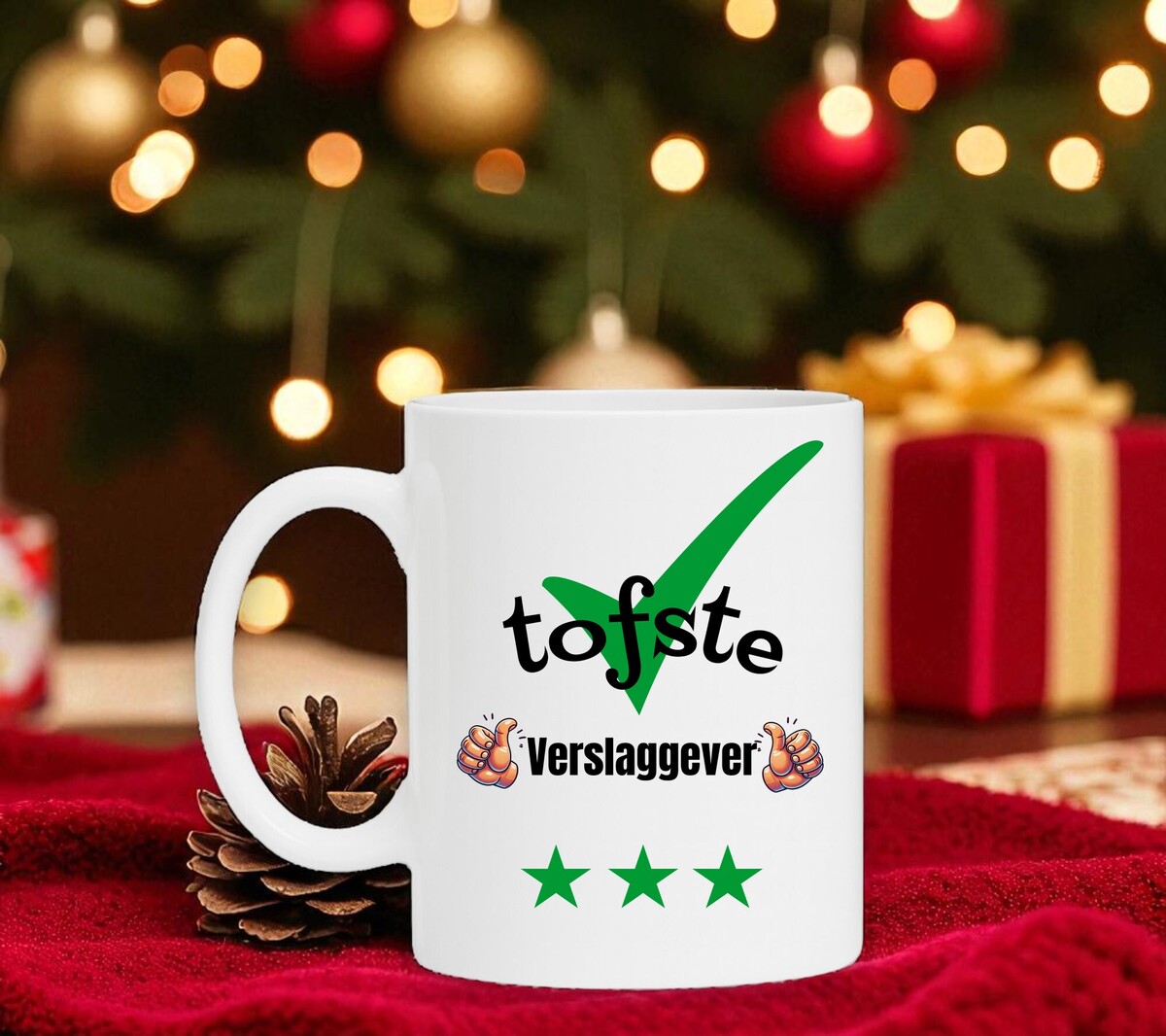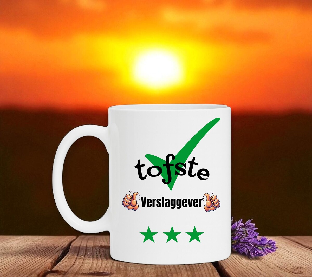 Een prachtig kado voor de tofste Verslaggever. Leuk om cadeau te geven en te krijgen, Een tof bedankje of gewoon zomaar een leuk gebaar. De mok is vaatwasserbestendig en magnetronbestendig en heeft een hoogte van 96mm en een diameter van 80mm.