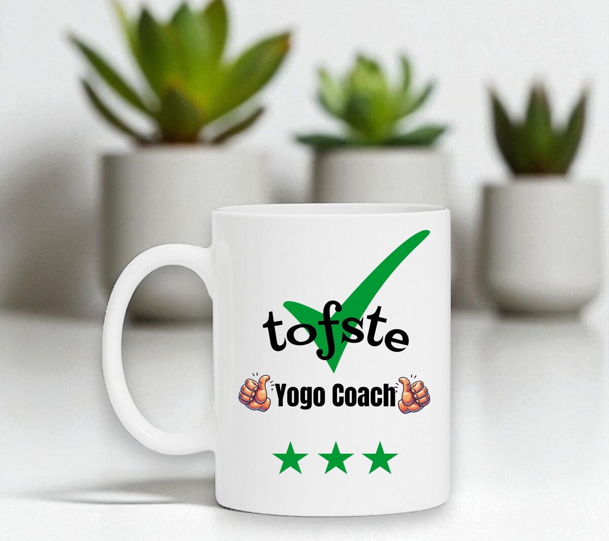 Een prachtig kado voor de tofste Yogo Coach. Leuk om cadeau te geven en te krijgen, Een tof bedankje of gewoon zomaar een leuk gebaar. De mok is vaatwasserbestendig en magnetronbestendig en heeft een hoogte van 96mm en een diameter van 80mm.