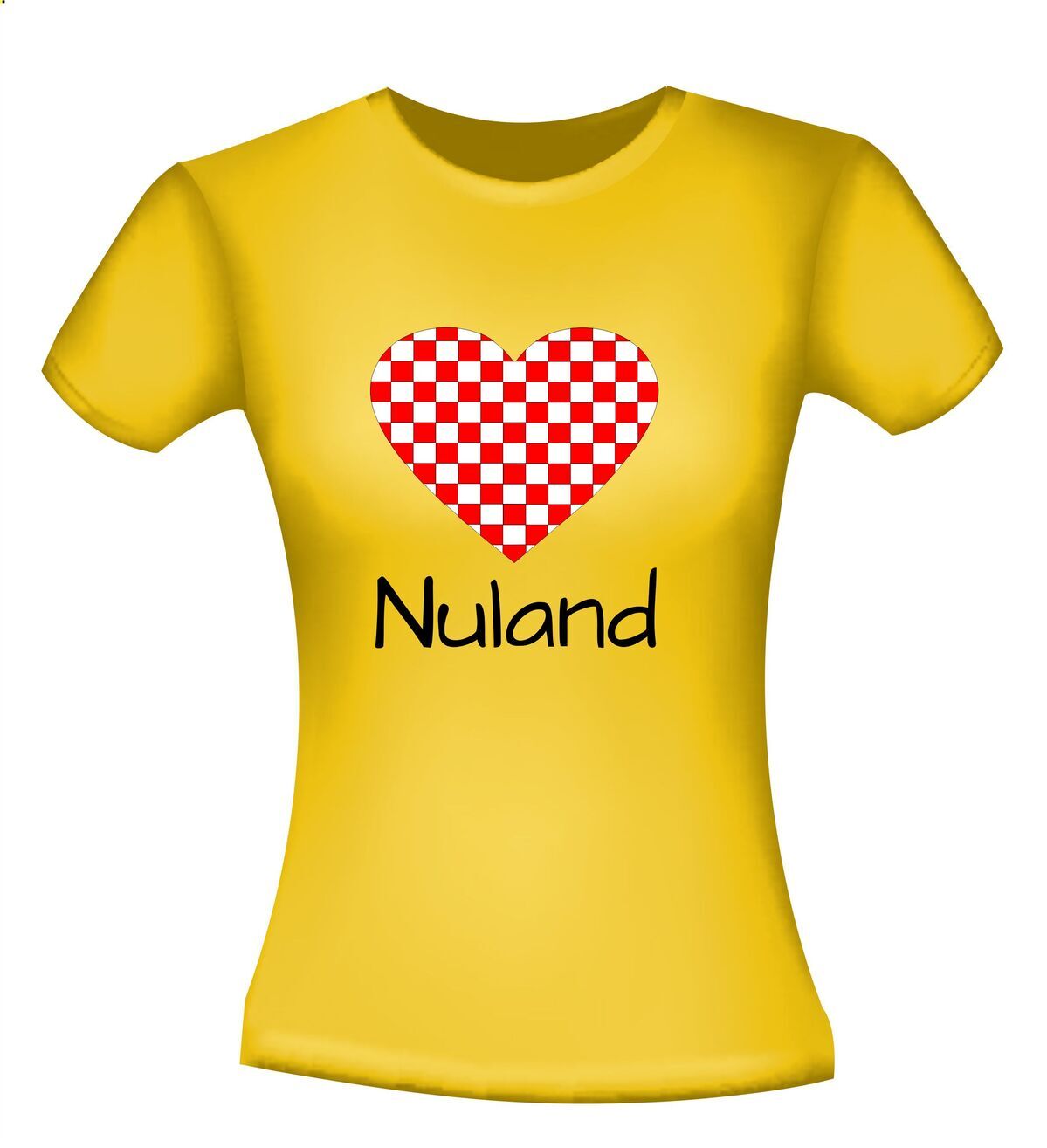 Toon je trots op Nuland, jouw Brabantse plek waar je van houdt! Dit unieke T-shirt met een stijlvol hart in de kleuren van de Brabantse vlag, gecombineerd met de naam van jouw woonplaats, is een echte blikvanger. Perfect voor iedereen die zich verbonden voelt met het mooiste stukje Brabant.