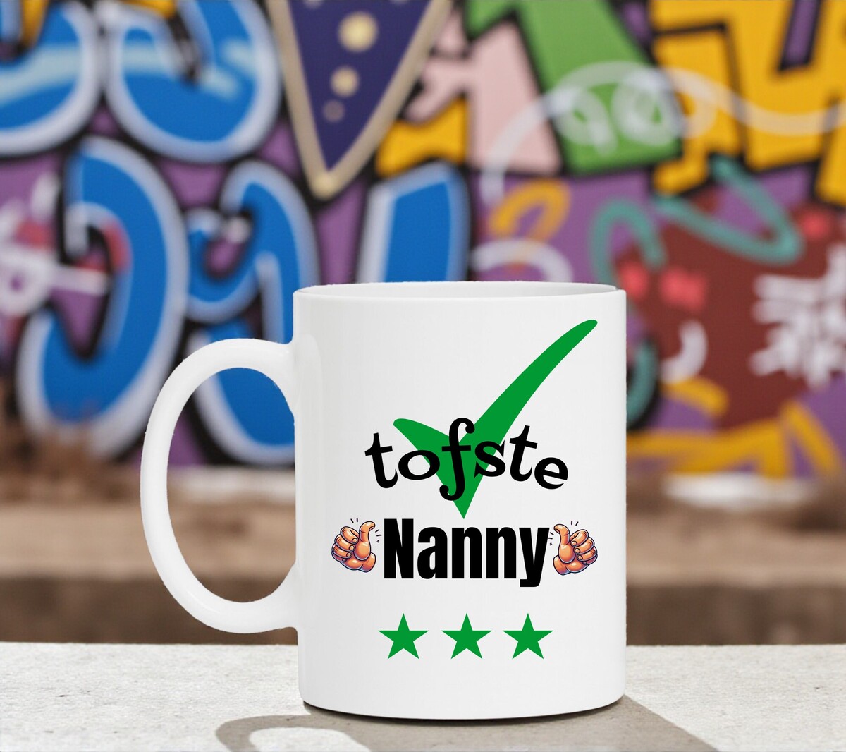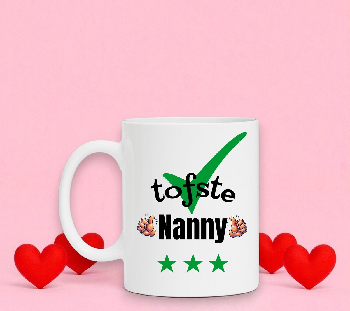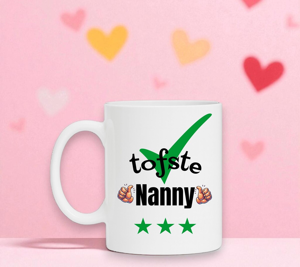 Een prachtig kado voor de tofste Nanny. Erg Leuk om de mok cadeau te geven. Een tof bedankje of gewoon zomaar een leuk gebaar. De mok is vaatwasserbestendig en magnetronbestendig en heeft een hoogte van 96mm en een diameter van 80mm.