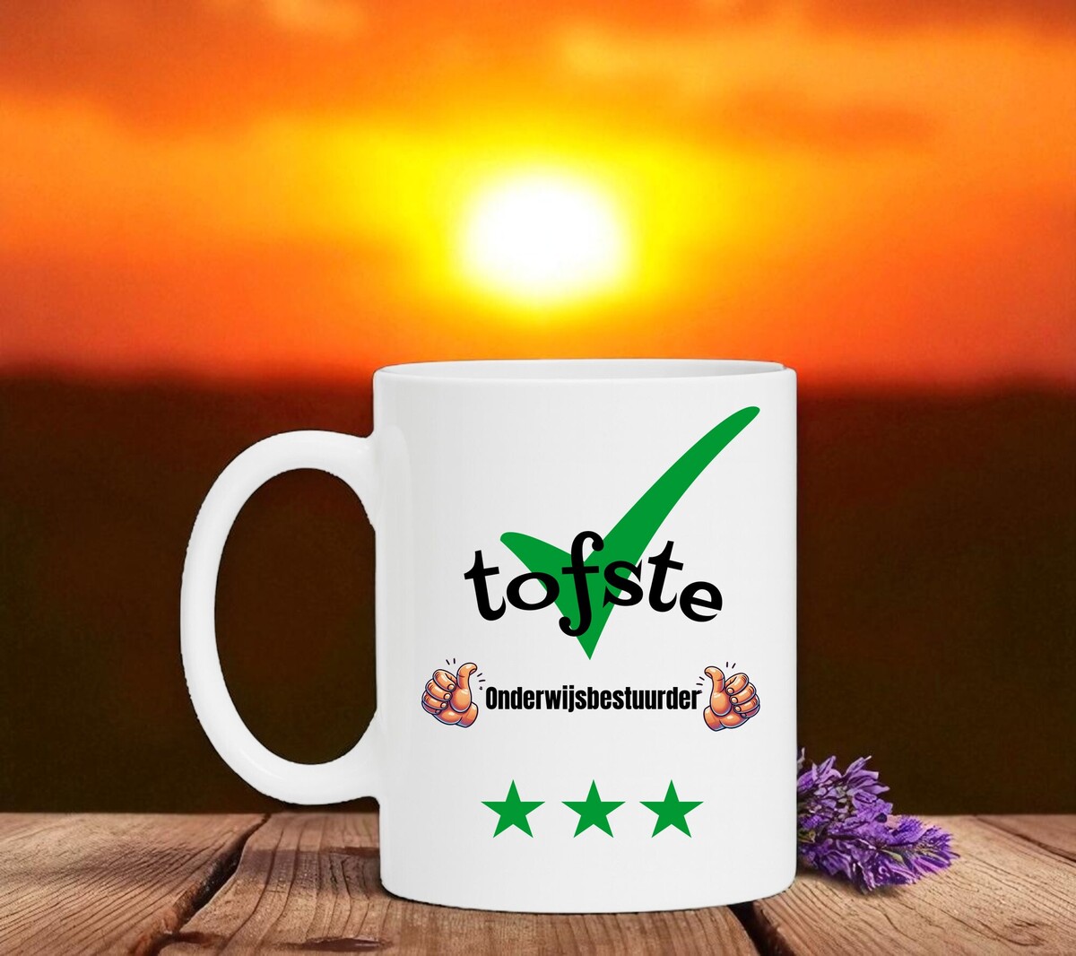 Een prachtig kado voor de tofste Onderwijsbestuurder. Erg Leuk om de mok cadeau te geven. Een tof bedankje of gewoon zomaar een leuk gebaar. De mok is vaatwasserbestendig en magnetronbestendig en heeft een hoogte van 96mm en een diameter van 80mm.