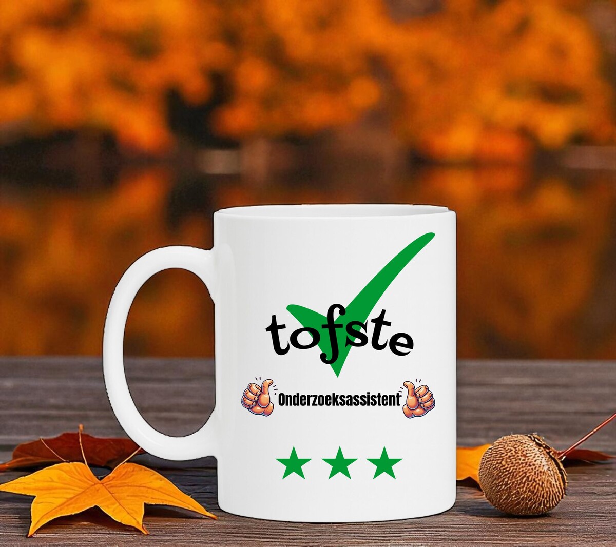 Een prachtig kado voor de tofste Onderzoeksassistent. Erg Leuk om de mok cadeau te geven. Een tof bedankje of gewoon zomaar een leuk gebaar. De mok is vaatwasserbestendig en magnetronbestendig en heeft een hoogte van 96mm en een diameter van 80mm.