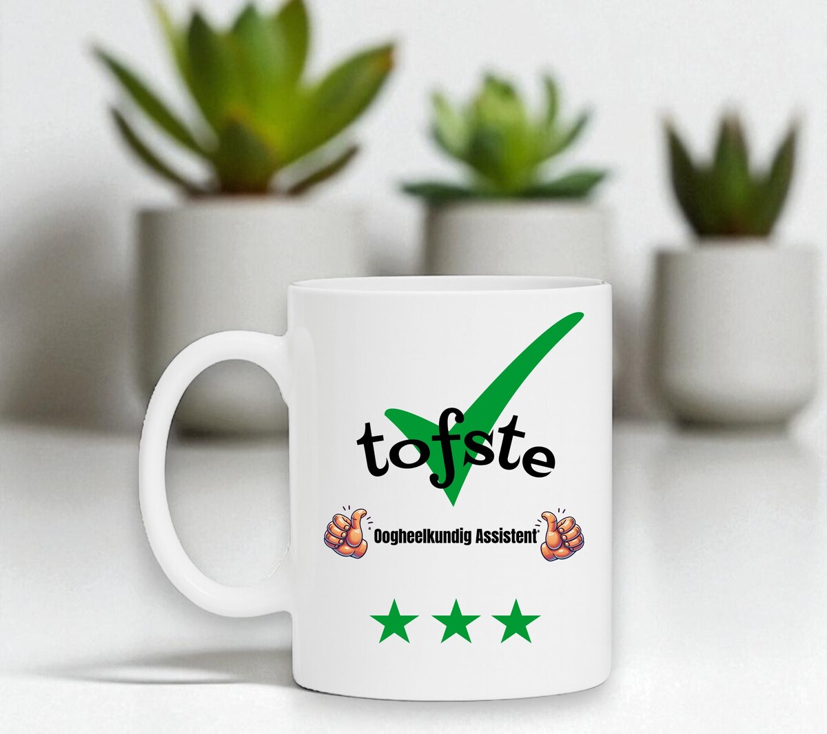 Een prachtig kado voor de tofste Oogheelkundig Assistent. Erg Leuk om de mok cadeau te geven. Een tof bedankje of gewoon zomaar een leuk gebaar. De mok is vaatwasserbestendig en magnetronbestendig en heeft een hoogte van 96mm en een diameter van 80mm.
