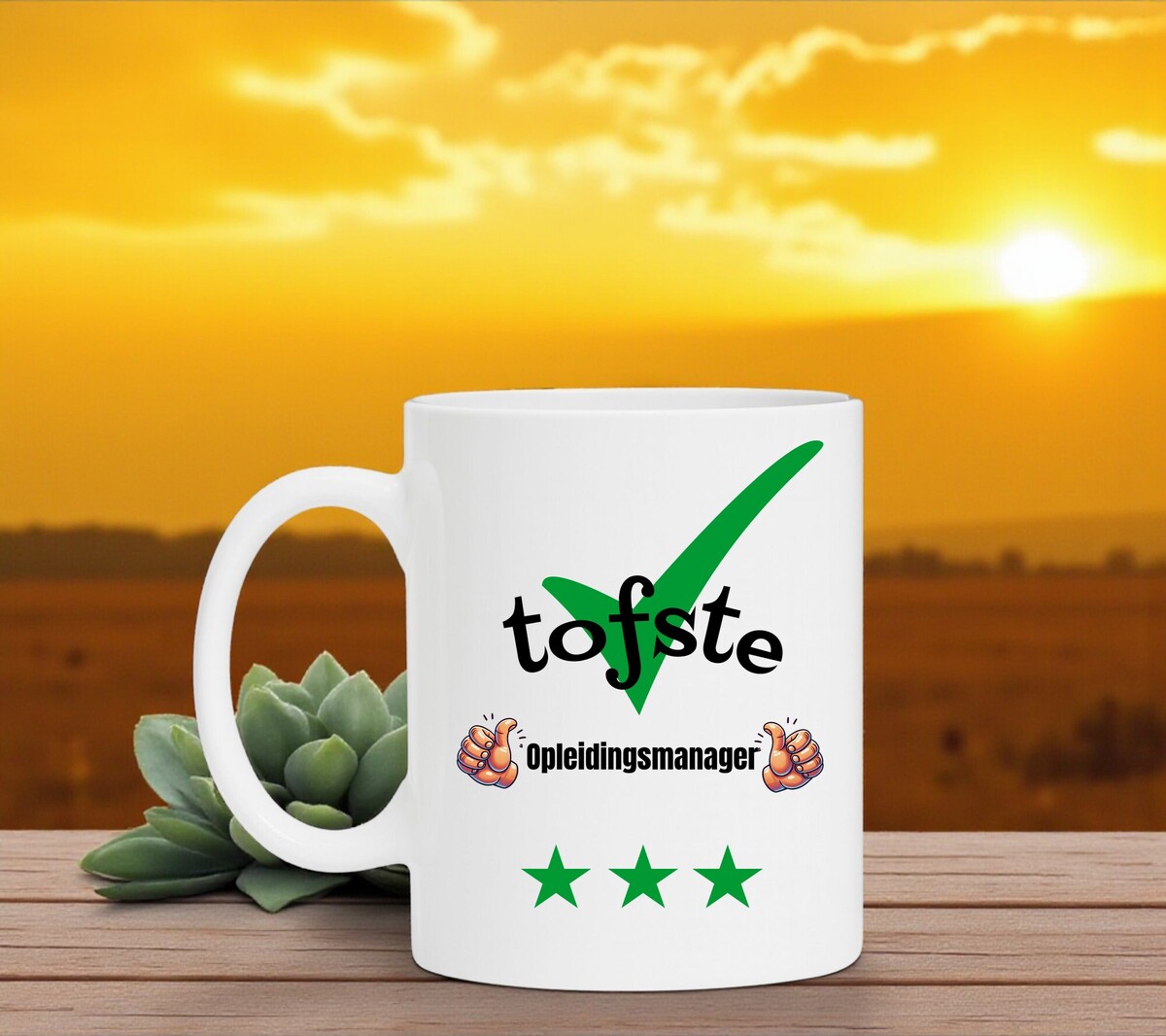 Een prachtig kado voor de tofste Opleidingsmanager. Erg Leuk om de mok cadeau te geven. Een tof bedankje of gewoon zomaar een leuk gebaar. De mok is vaatwasserbestendig en magnetronbestendig en heeft een hoogte van 96mm en een diameter van 80mm.