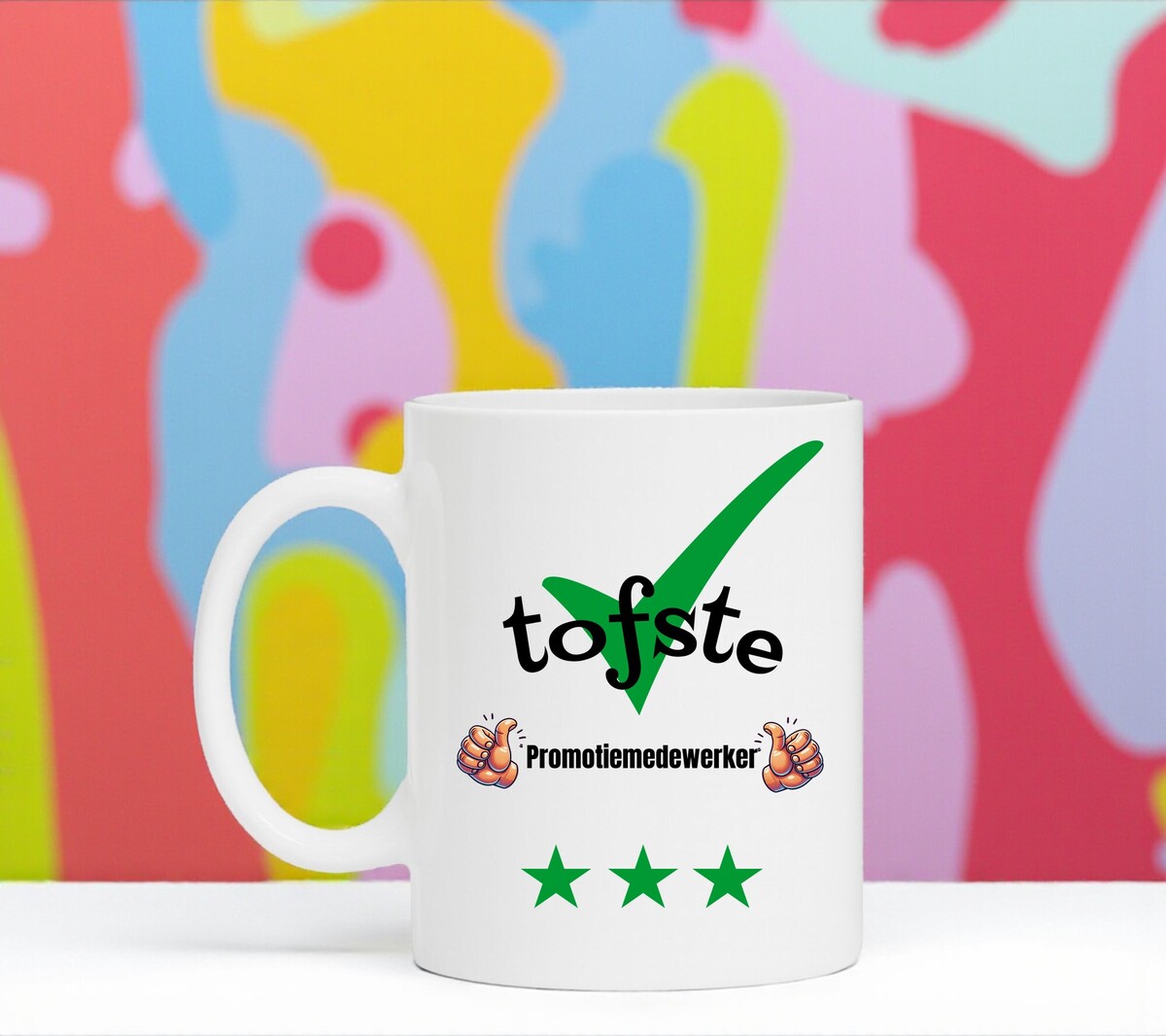 Een prachtig kado voor de tofste Promotiemedewerker. Erg Leuk om de mok cadeau te geven. Een tof bedankje of gewoon zomaar een leuk gebaar. De mok is vaatwasserbestendig en magnetronbestendig en heeft een hoogte van 96mm en een diameter van 80mm.