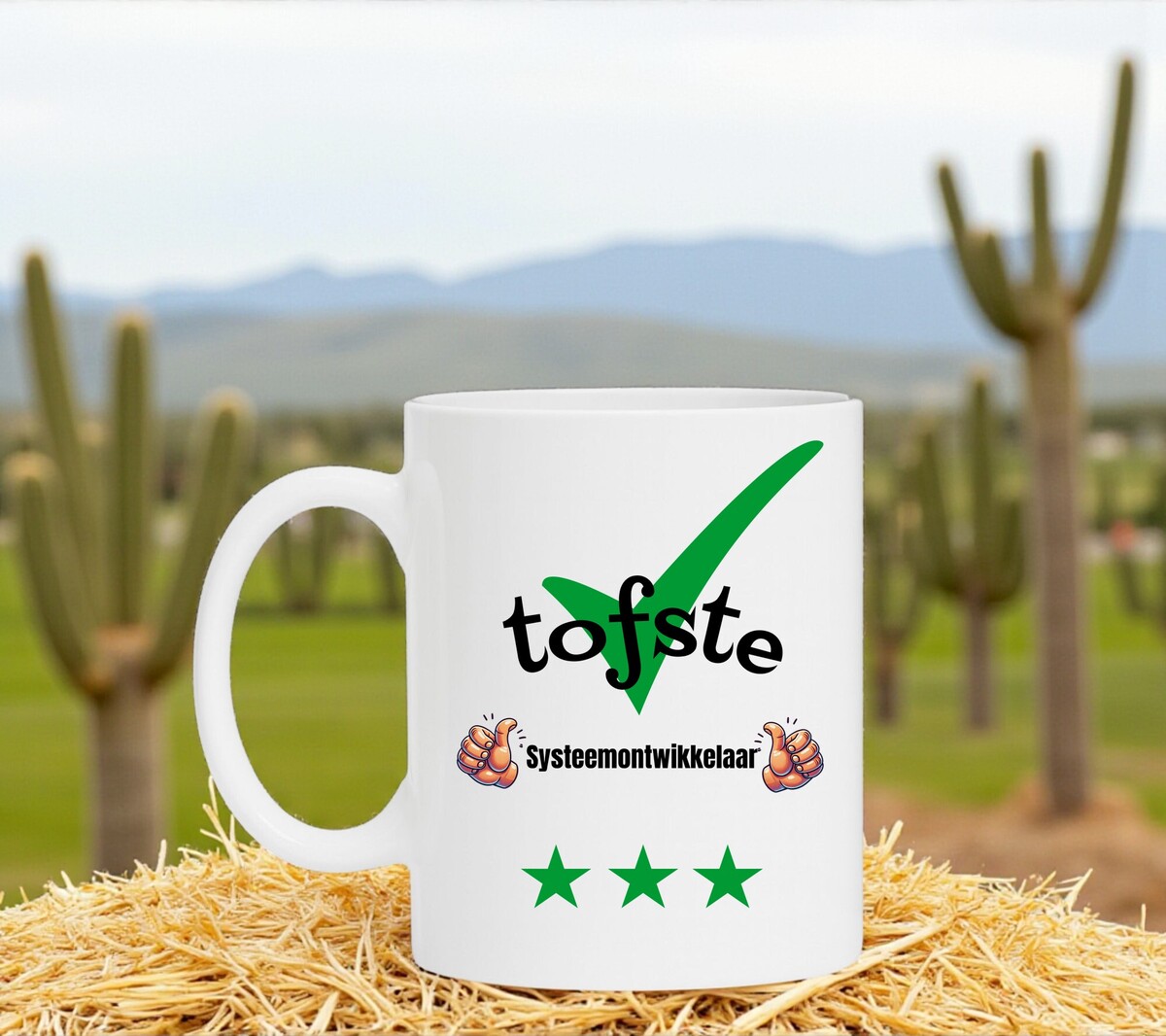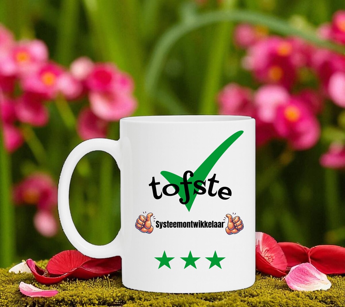 Een prachtig kado voor de tofste Systeemontwikkelaar. Erg Leuk om de mok cadeau te geven. Een tof bedankje of gewoon zomaar een leuk gebaar. De mok is vaatwasserbestendig en magnetronbestendig en heeft een hoogte van 96mm en een diameter van 80mm.