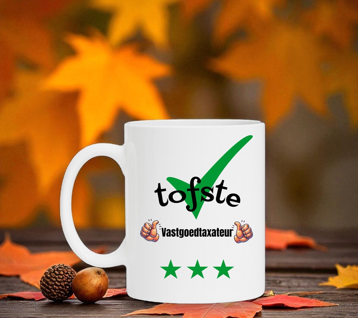 Een prachtig kado voor de tofste Vastgoedtaxateur. Erg Leuk om de mok cadeau te geven. Een tof bedankje of gewoon zomaar een leuk gebaar. De mok is vaatwasserbestendig en magnetronbestendig en heeft een hoogte van 96mm en een diameter van 80mm.