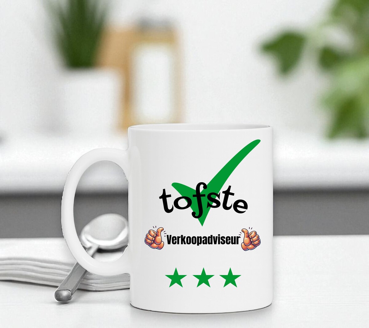 Een prachtig kado voor de tofste Verkoopadviseur. Erg Leuk om de mok cadeau te geven. Een tof bedankje of gewoon zomaar een leuk gebaar. De mok is vaatwasserbestendig en magnetronbestendig en heeft een hoogte van 96mm en een diameter van 80mm.