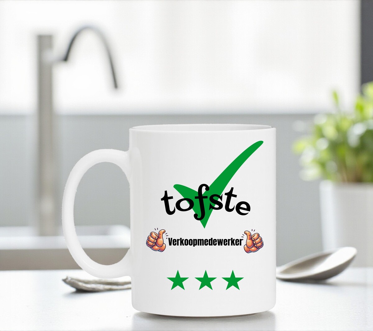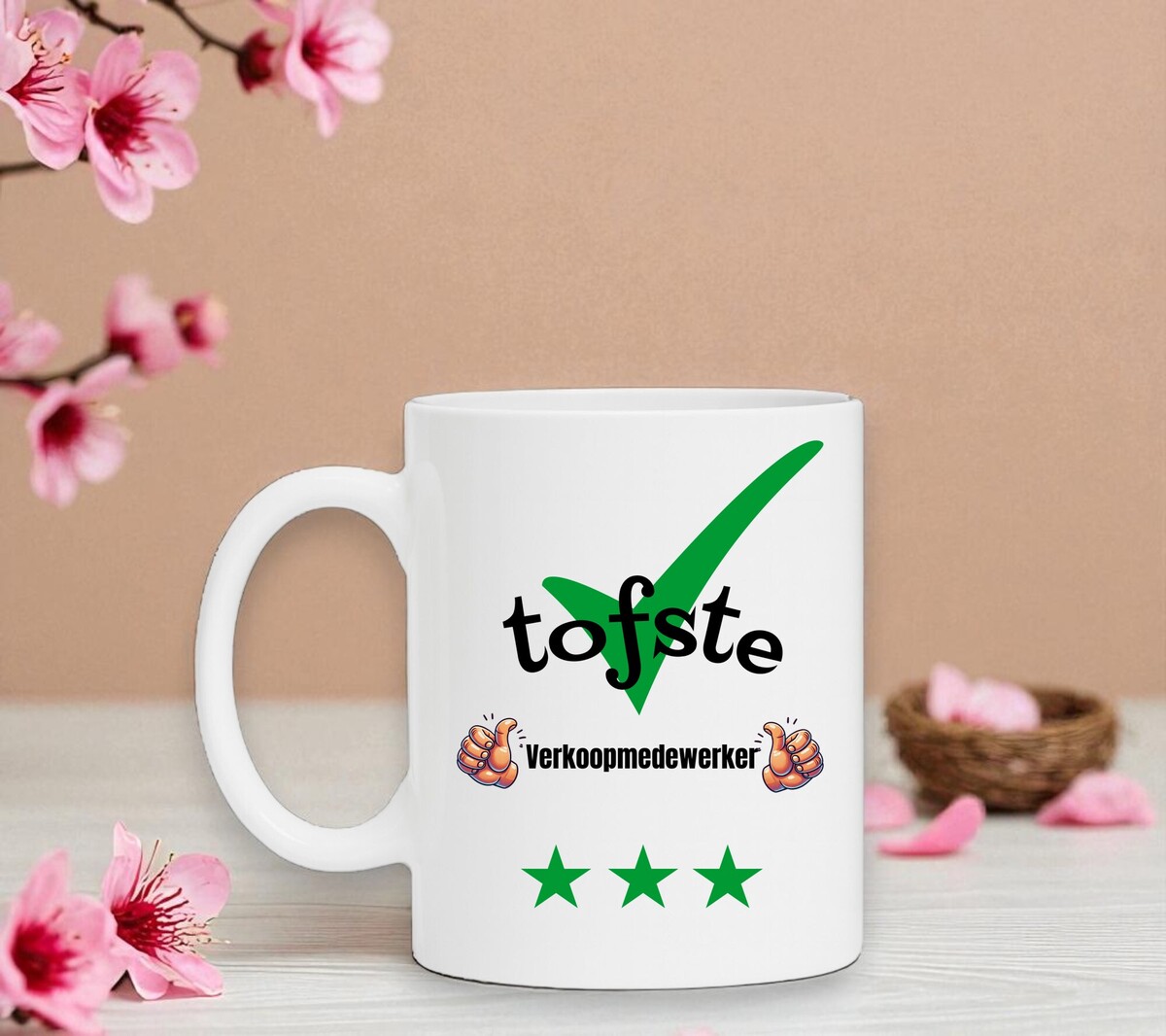 Een prachtig kado voor de tofste Verkoopmedewerker. Erg Leuk om de mok cadeau te geven. Een tof bedankje of gewoon zomaar een leuk gebaar. De mok is vaatwasserbestendig en magnetronbestendig en heeft een hoogte van 96mm en een diameter van 80mm.