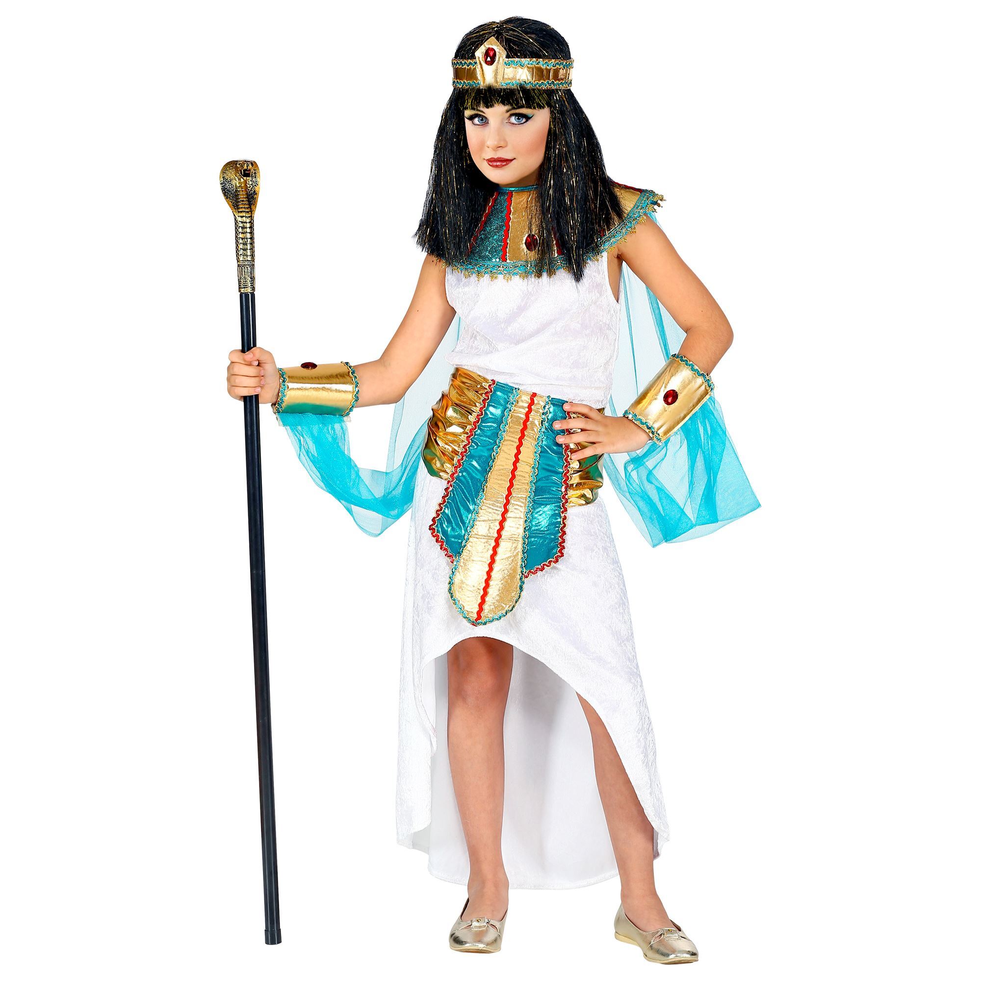 Deze egytpische cleopatra outfit voor meisjes is zeker een aanrader voor carnaval. Dit egyptische koningin van de nijl kostuum bestaat uit: jurk,kraag,sluier,manchetten,riem en egyptische hoofdbedekking.