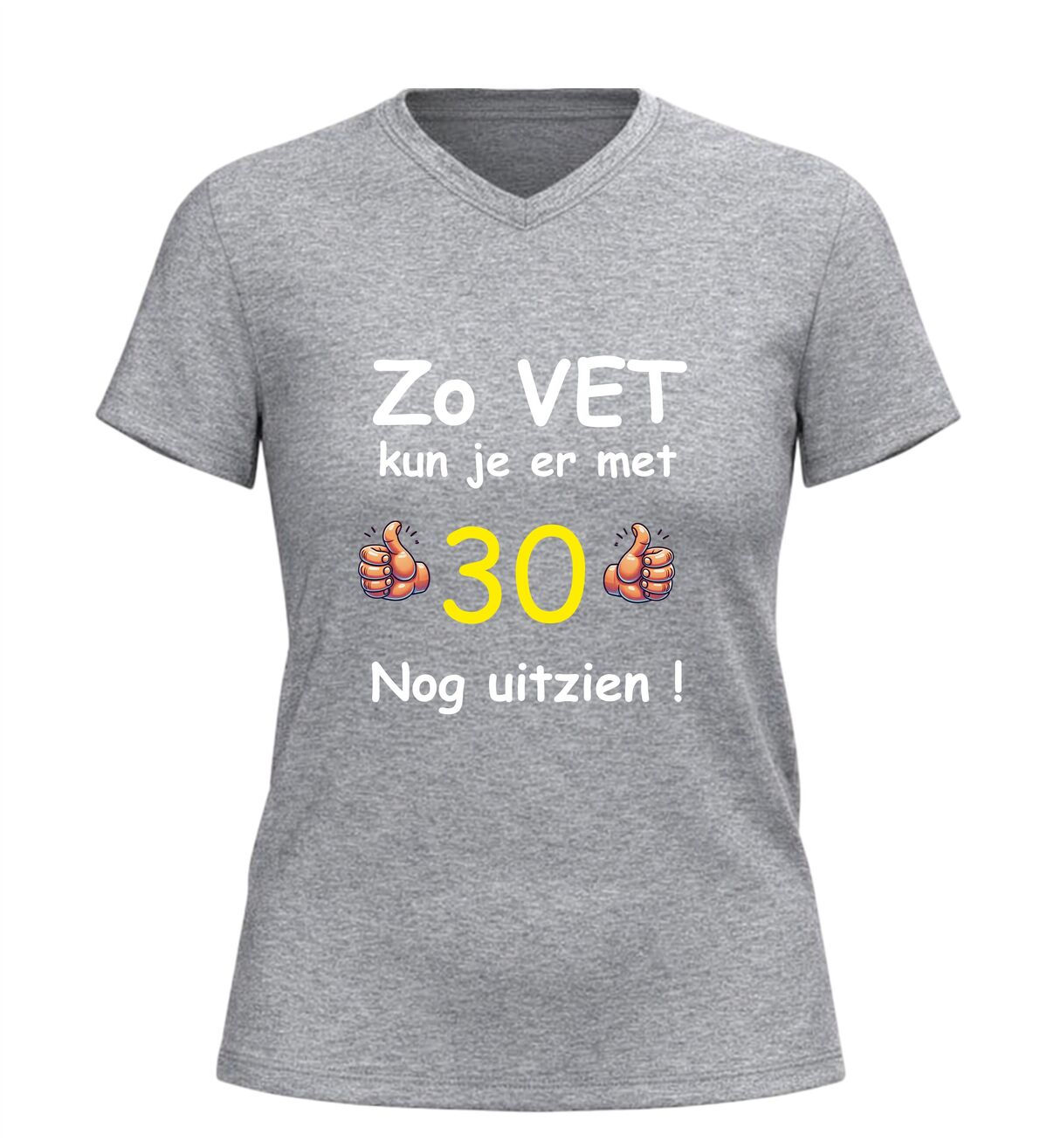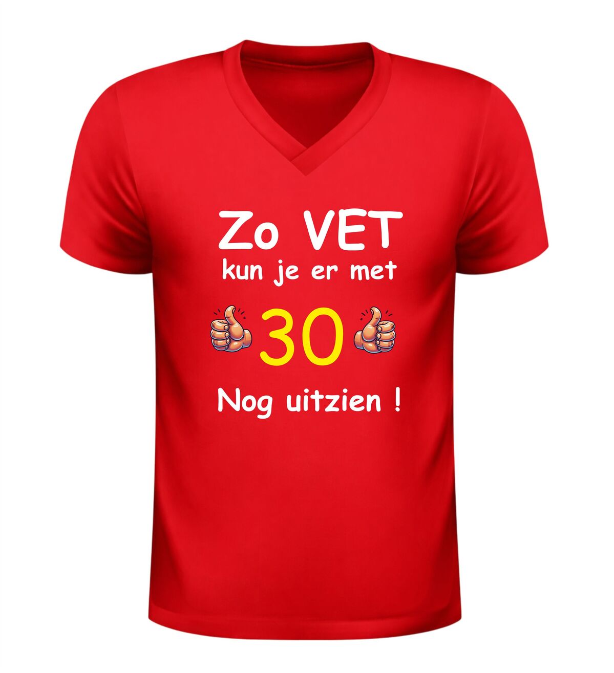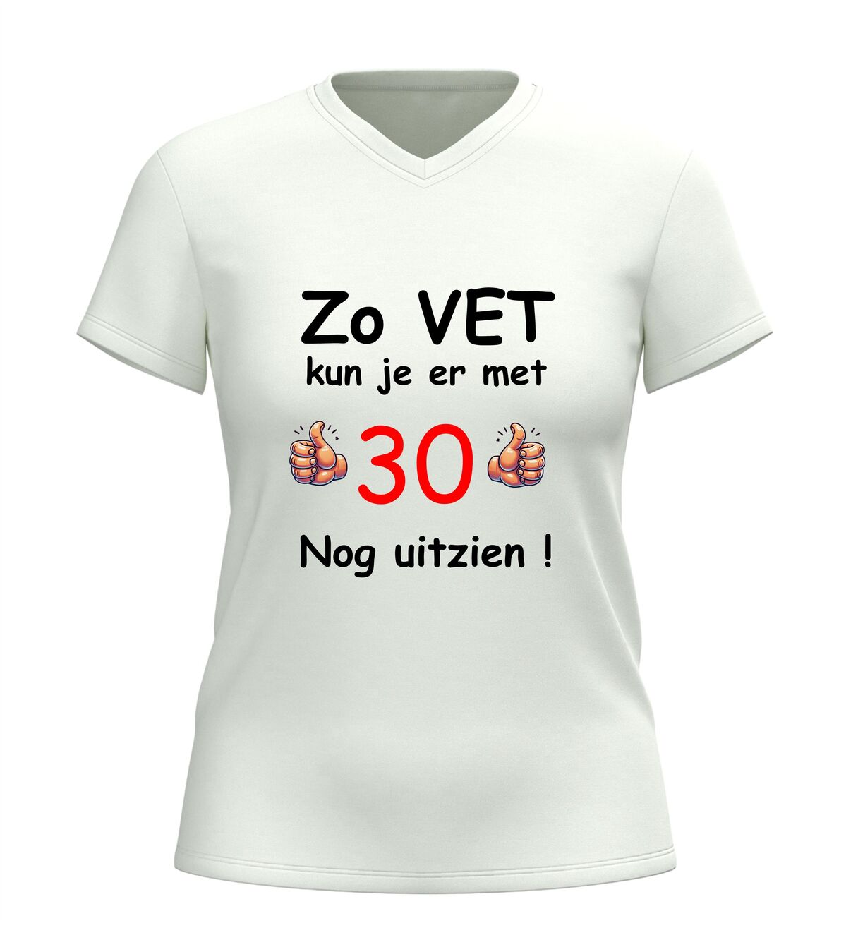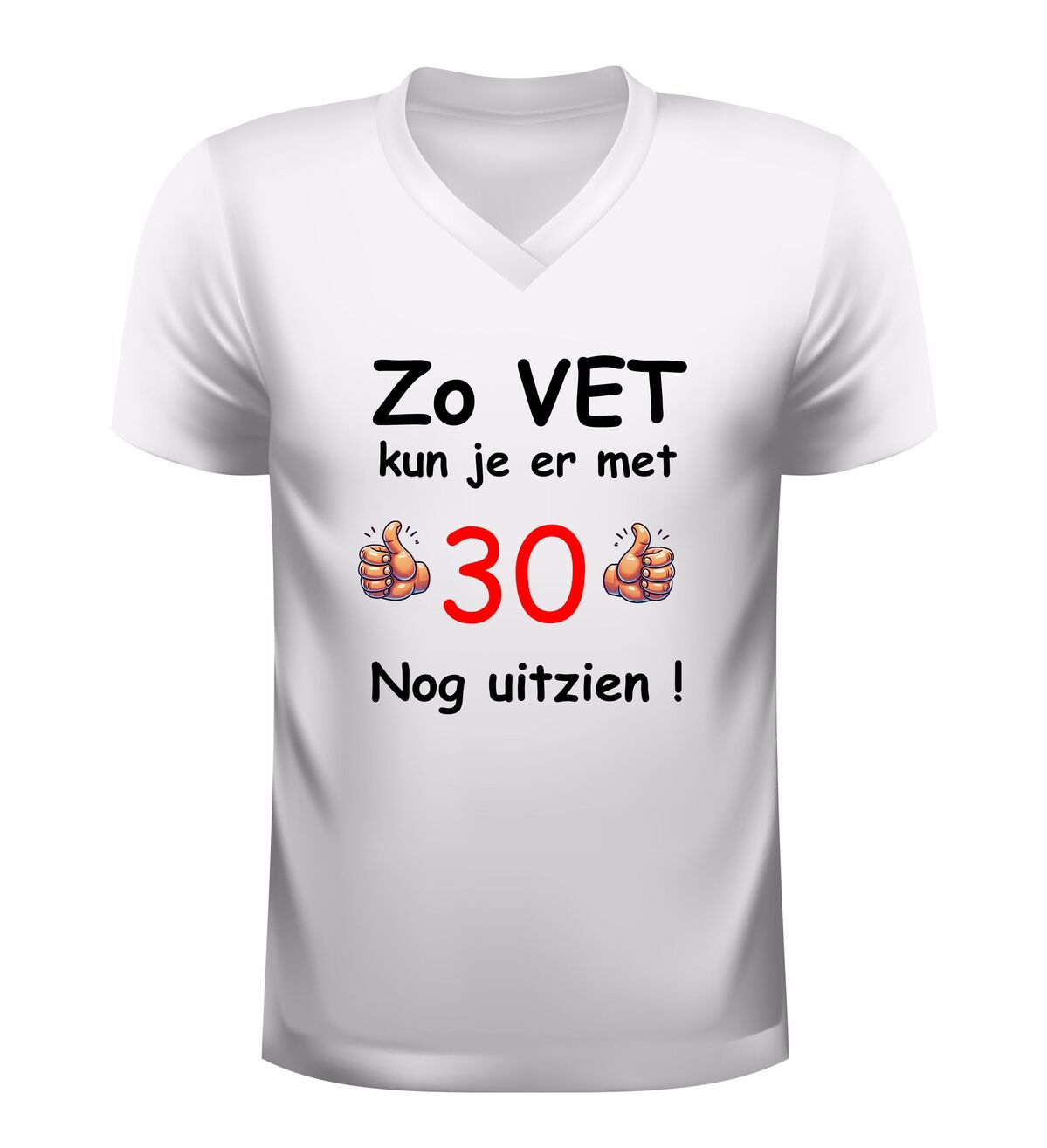 Vier de mijlpaal van 30 jaar in stijl met dit grappige verjaardag shirt met de tekst zo vet kun je er met 30 nog uitzien. Dit 30 jaar T-shirt is dé perfecte outfit voor een verjaardagfeest en zorgt gegarandeerd voor lachende gezichten. Of je nu zelf 30 wordt of op zoek bent naar een origineel cadeau voor iemand die deze bijzondere leeftijd bereikt, met dit shirt maak je van de dertigste verjaardag een extra feestelijk moment.