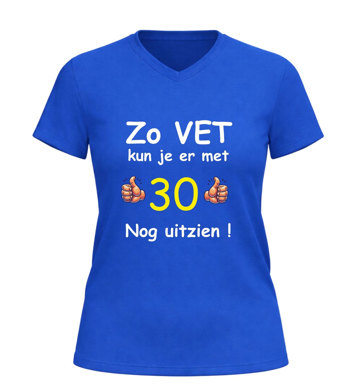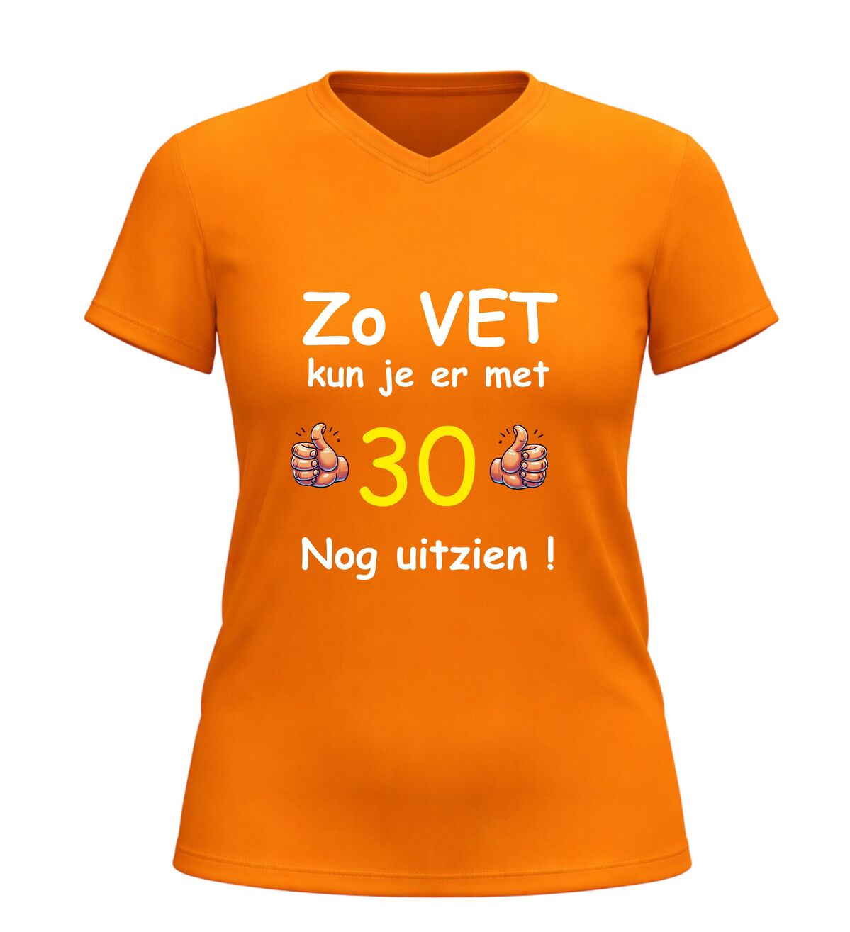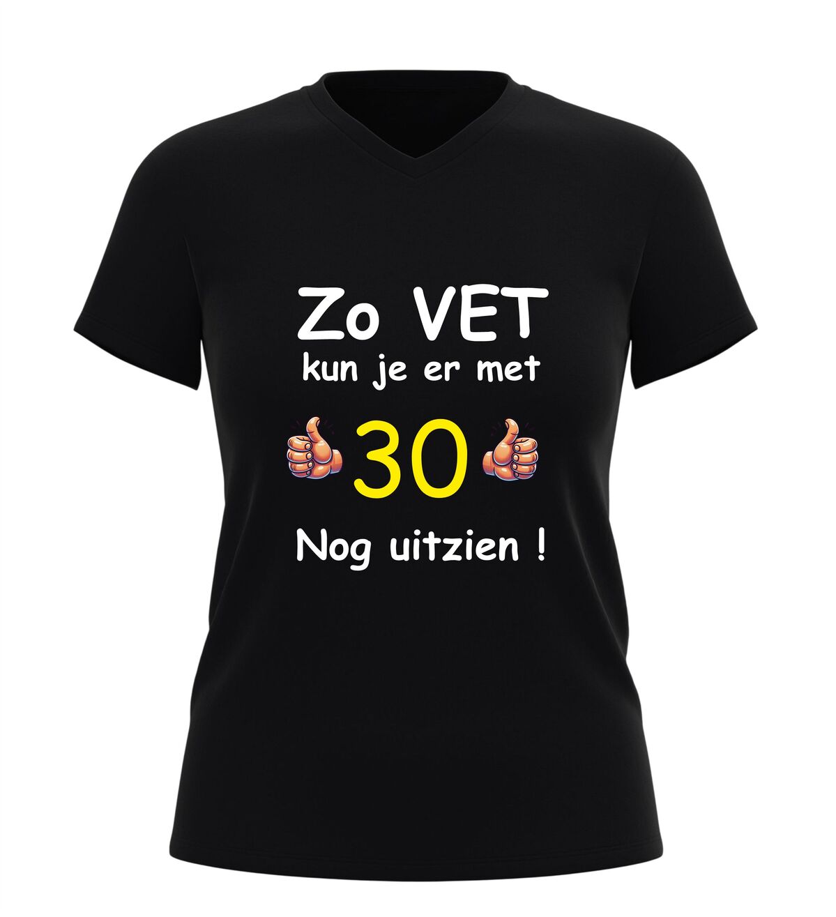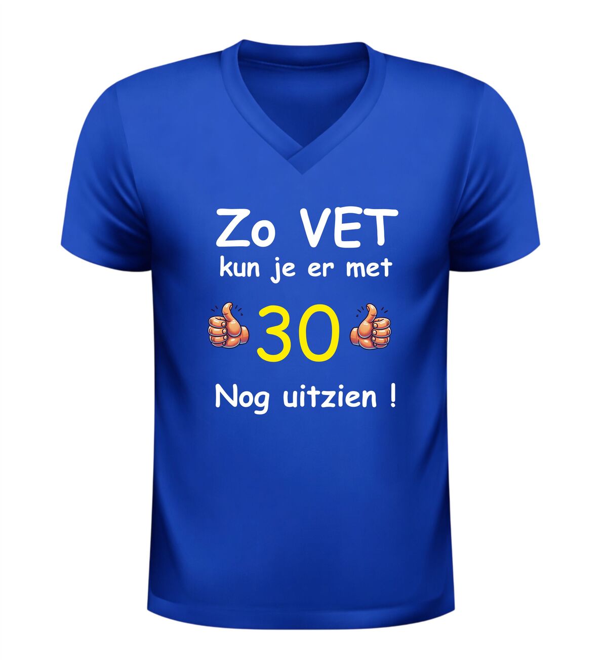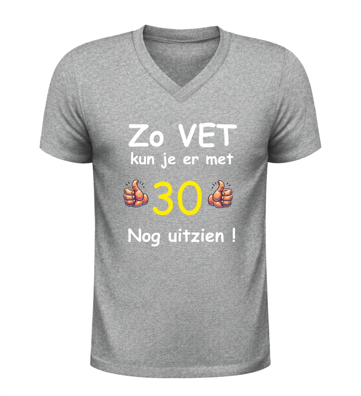 Vier de mijlpaal van 30 jaar in stijl met dit grappige verjaardag shirt met de tekst zo vet kun je er met 30 nog uitzien. Dit 30 jaar T-shirt is dé perfecte outfit voor een verjaardagfeest en zorgt gegarandeerd voor lachende gezichten. Of je nu zelf 30 wordt of op zoek bent naar een origineel cadeau voor iemand die deze bijzondere leeftijd bereikt, met dit shirt maak je van de dertigste verjaardag een extra feestelijk moment.