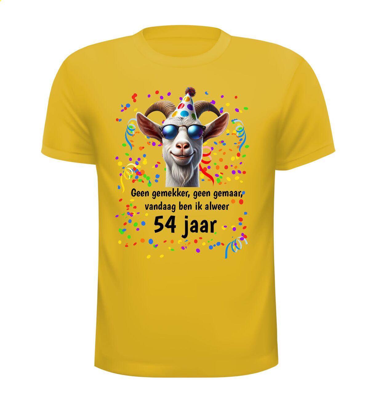 op zoek na een leuk en orgineel verjaardag fun shirt voor een 54e verjaardag? dan heb je die gevonden. Dit grappige full colour t-shirt met feestelijke print en tekst is zowel in dames shirt als unisex shirt leverbaar.