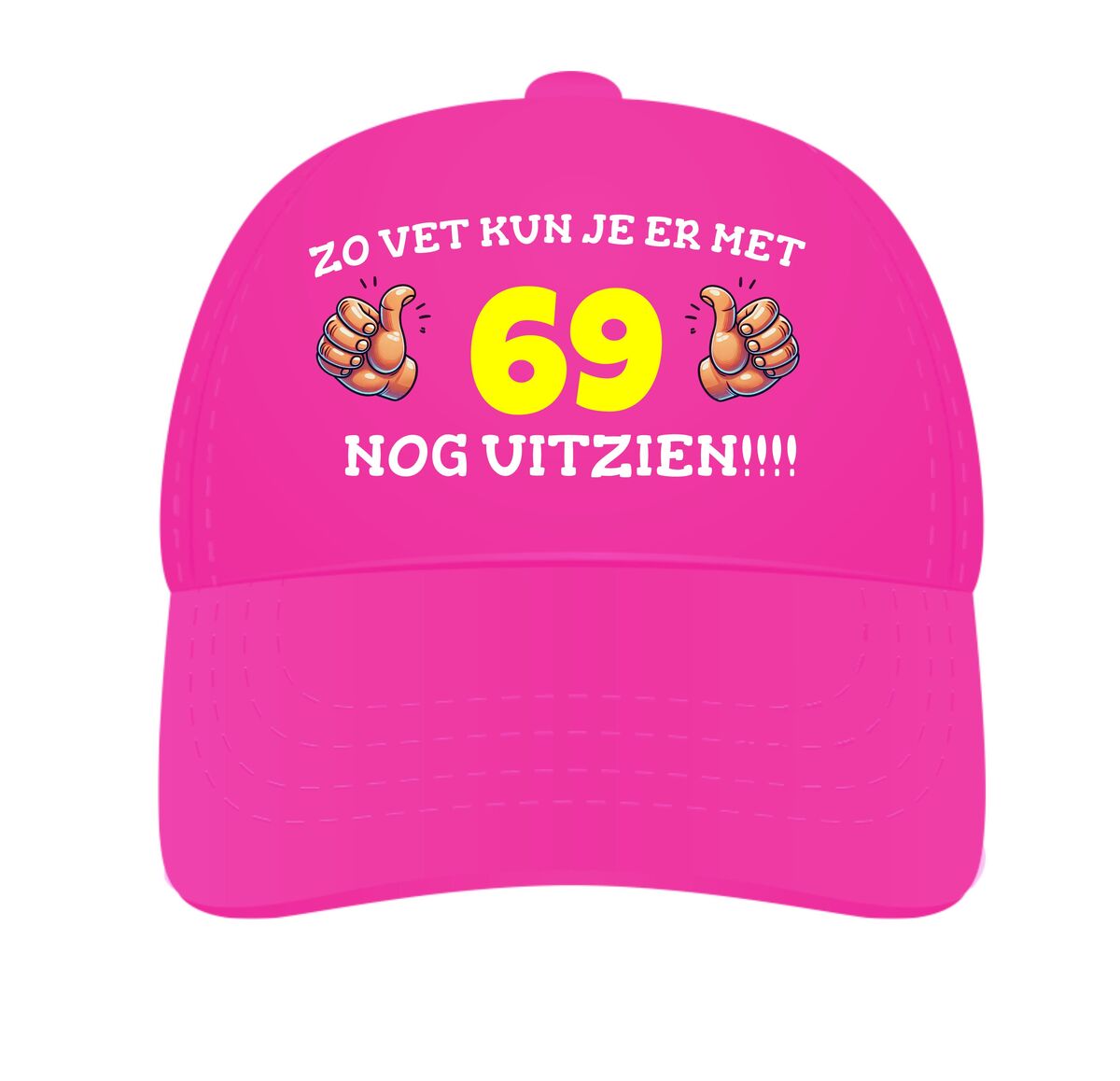 Leuke verstelbare met de tekst: zo vet kun je er met 69 nog uitzien.