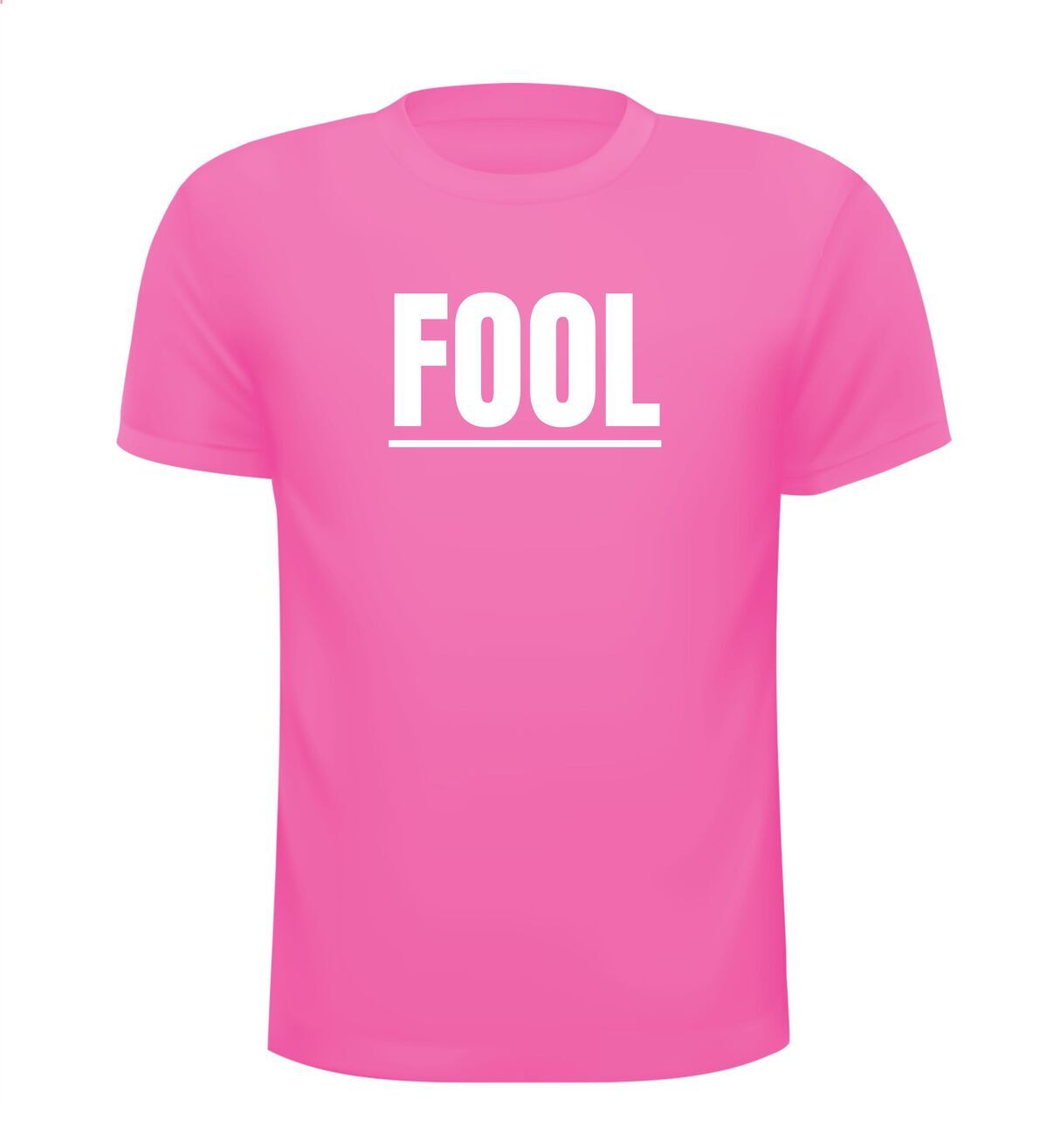 Een fool oftewel dwaas T-shirt. Het woord fool is onderstreept en in een strak lettertype geschreven!