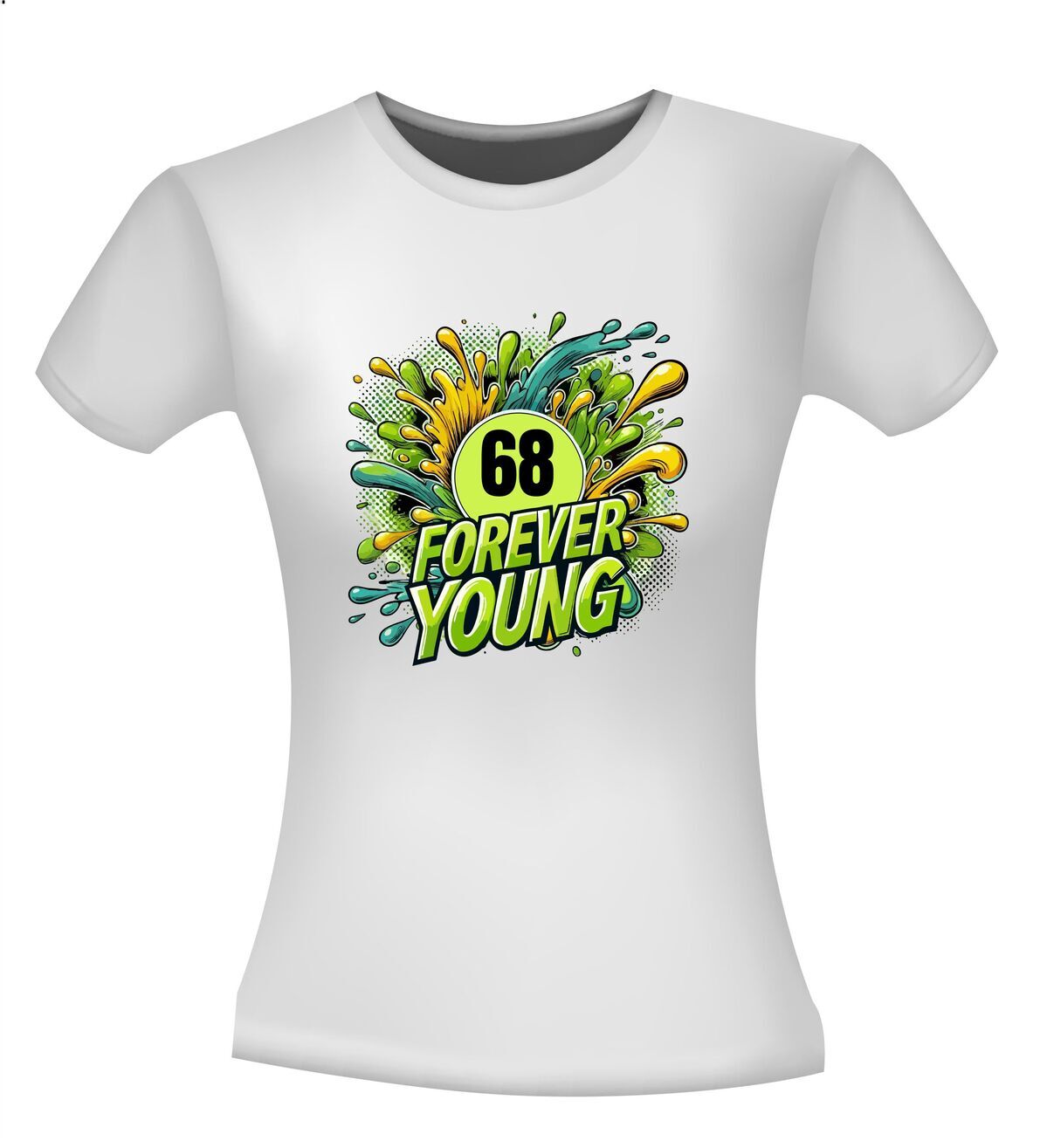 Forever young 68 jaar t shirt. Een leuk leeftijd shirt als cadeau voor een 68e verjaardag. Voor meer leuke en grappige leeftijd t-shirts ben je ook bij ons aan het juiste online adres.