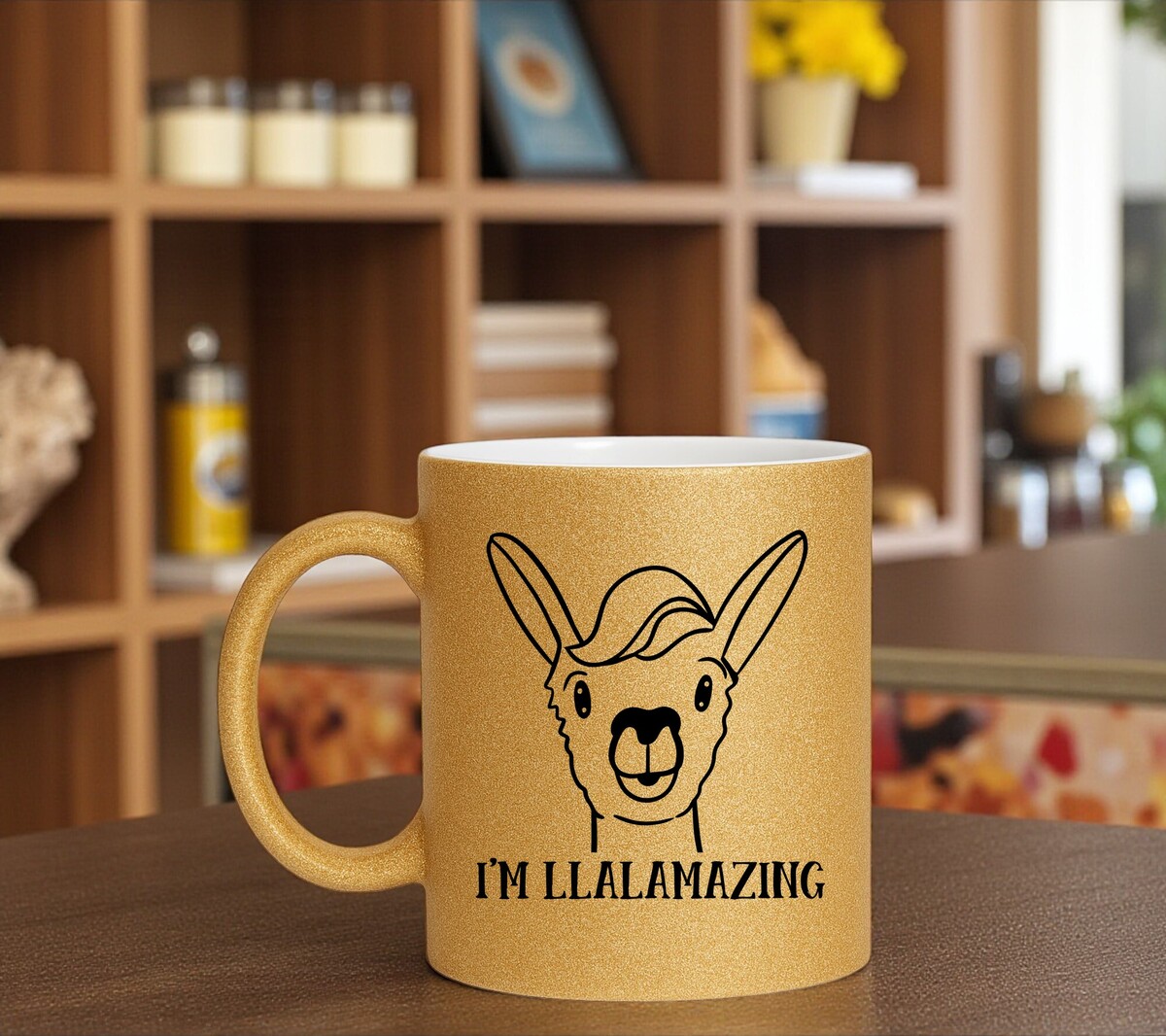 foute gouden glitter mok Lama koffie mok I am llalamazing ik ben geweldig.