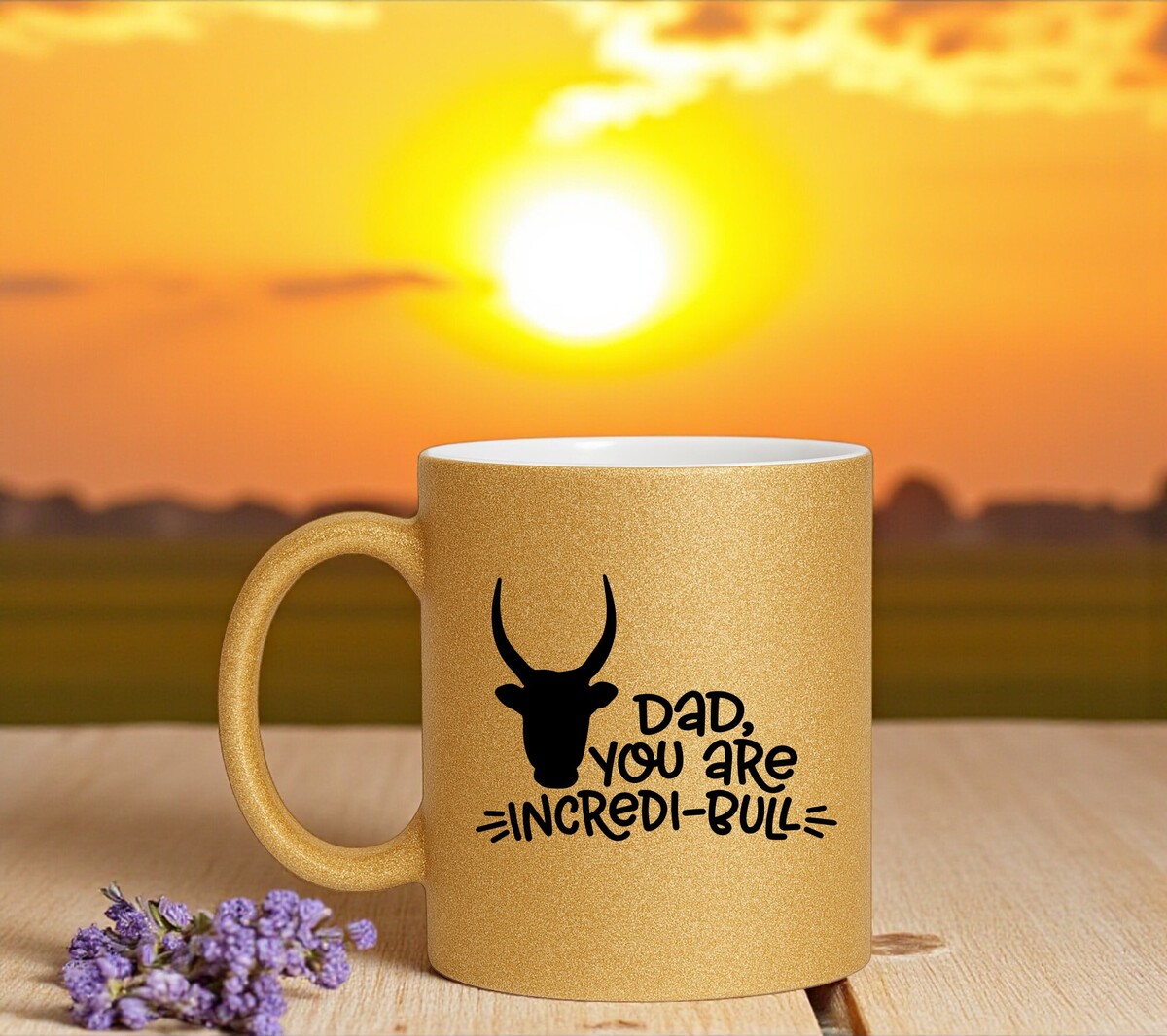 Foute gouden glitter Vaderdag mok Dad you are incredi-bull.