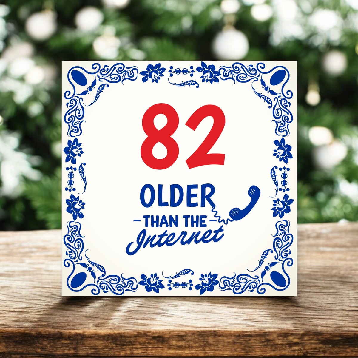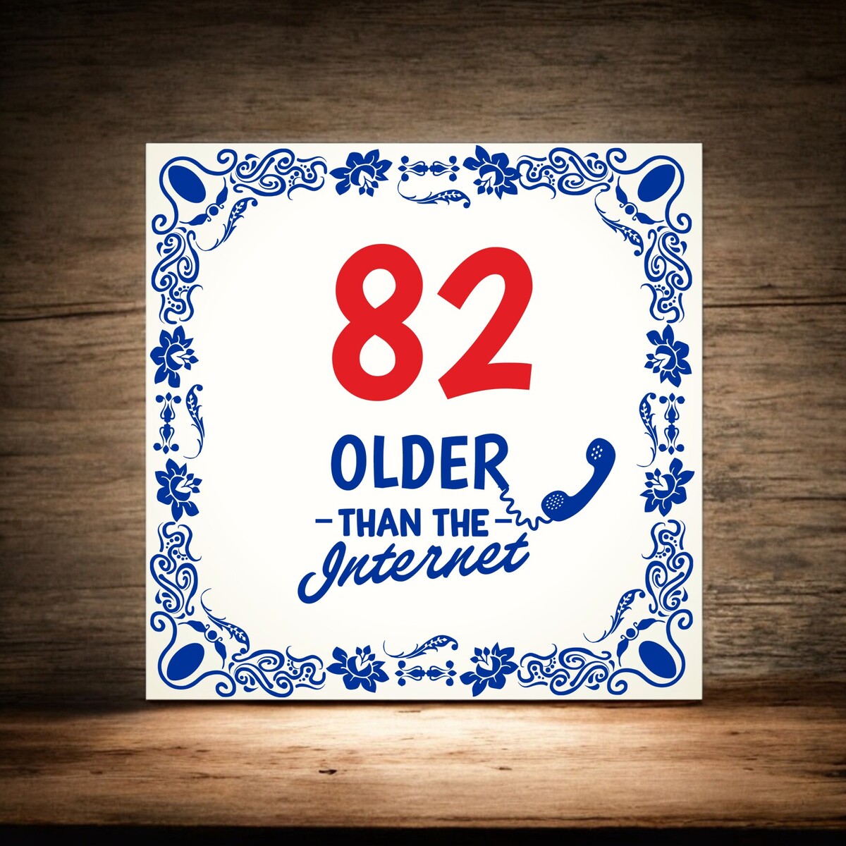 Op zoek naar een grappige tegel voor iemand die 82 jaar wordt? dan is deze spreukentegel met de tekst: 82 older than the internet zeker een aanrader. Het formaat van het tegeltje is 15 x 15 cm