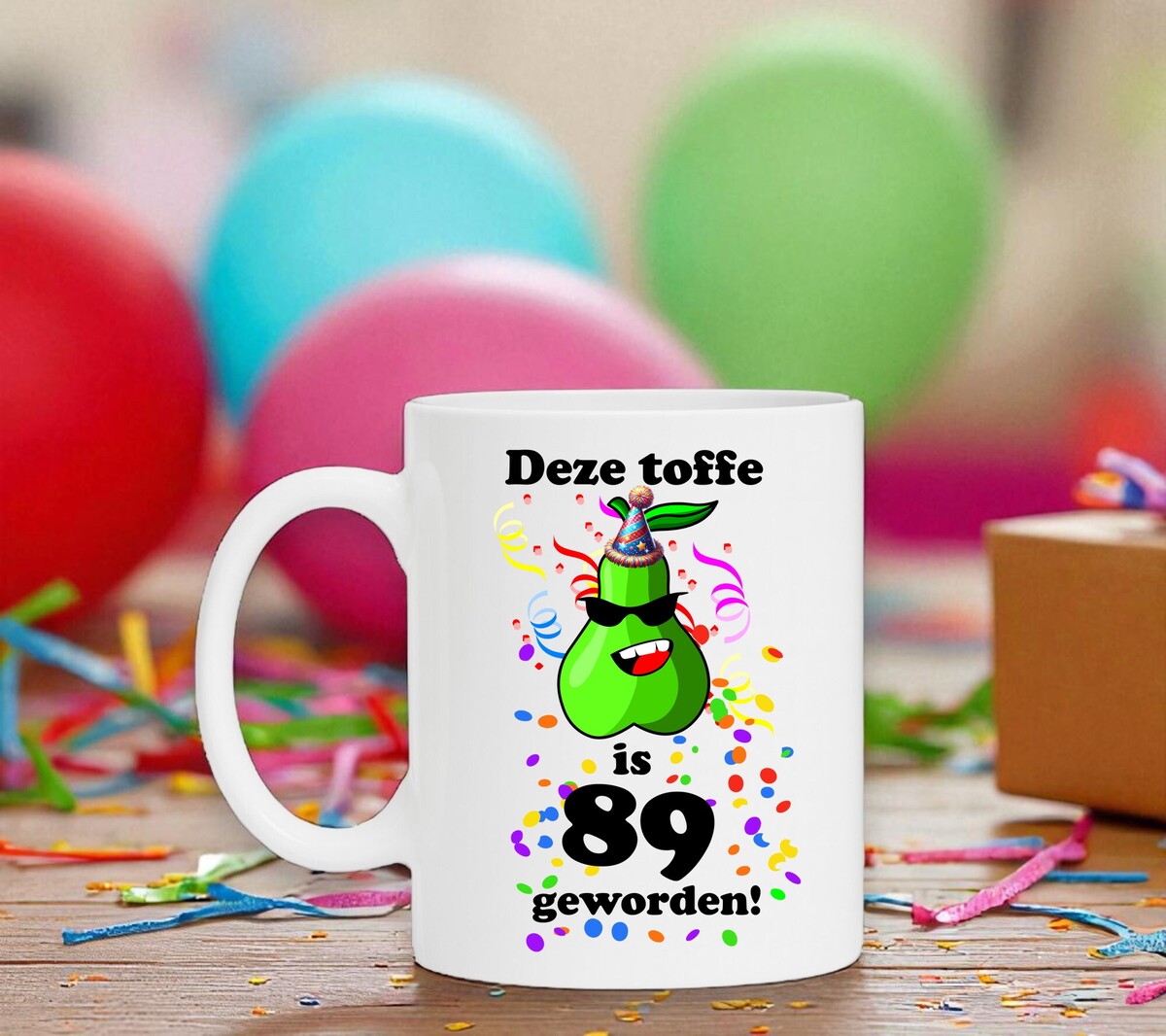 Deze mok is erg leuk om te geven aan een toffe peer van 89 die zijn of haar verjaardag viert. Op deze mok staat de grappige print van een toffe peer.