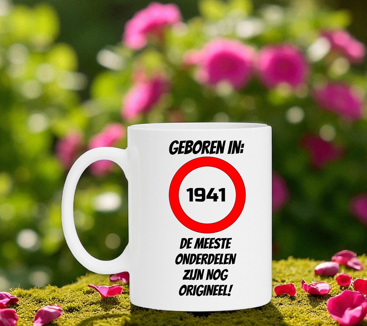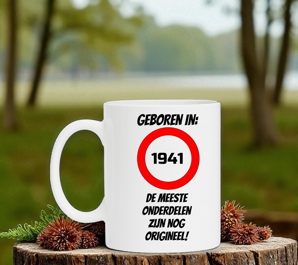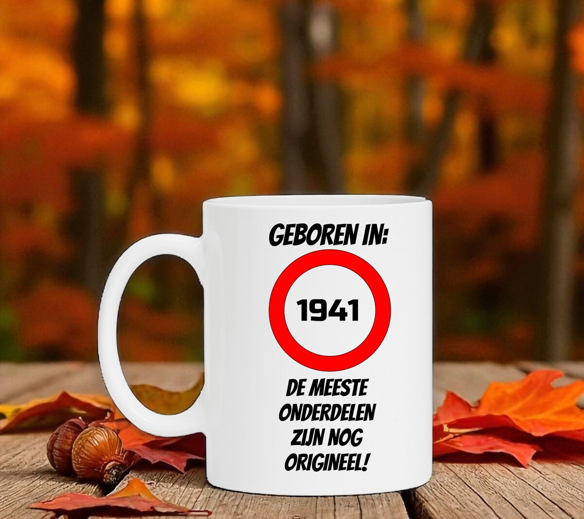Leuke jaartal mok met de tekst: geboren in 1941 de meeste onderdelen zijn nog orgineel.