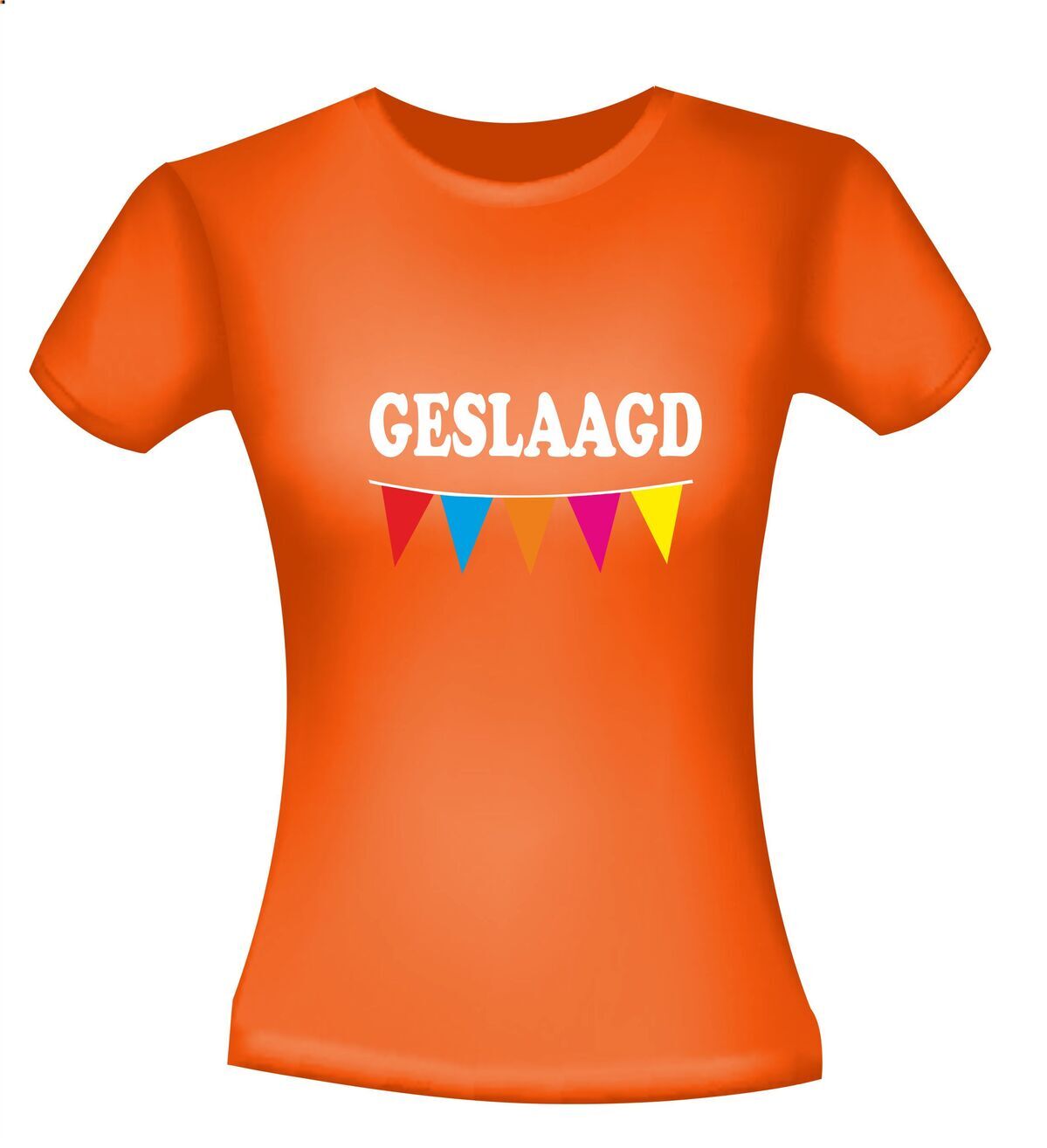 Geslaagd t-shirt. Dit t-shirt is voorzien van een mooie vlaggenlijn en de tekst geslaagd.
