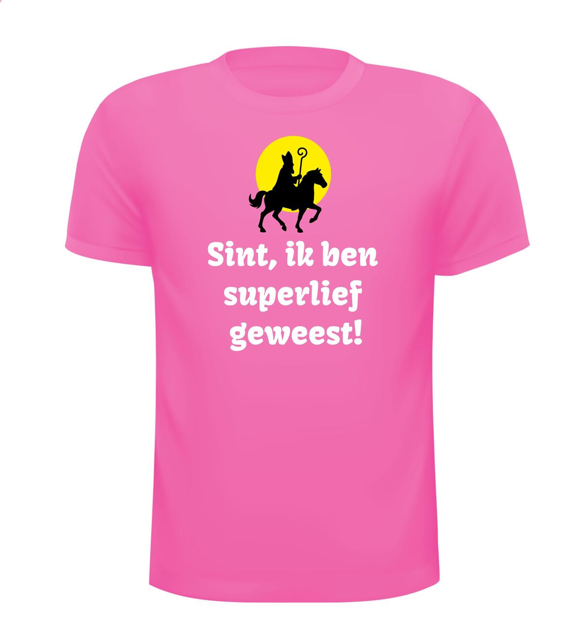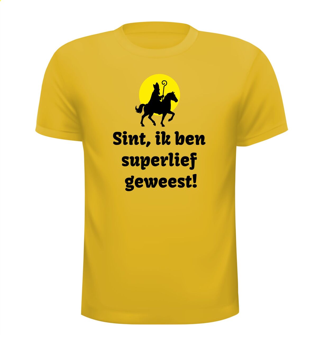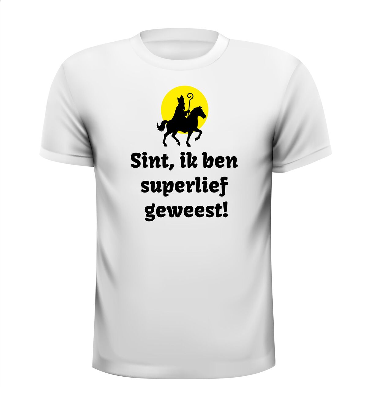 Heeft jouw kleintje het hele jaar superlief gedragen? Laat het dan aan Sinterklaas en zijn Pieten zien met dit fantastische t-shirt! Met de leuke opdruk 'sint, ik ben super lief geweest' zal jouw kind zeker opvallen tijdens het sinterklaasfeest of de intocht. Het shirt is gemaakt van zachte, comfortabele stof die perfect is voor kinderen. Een ideaal cadeau voor 5 december of gewoon om te dragen in de aanloop naar het grote feest. Wees er snel bij en bestel nu dit unieke Sinterklaas t-shirt voor jouw kleine superheld!