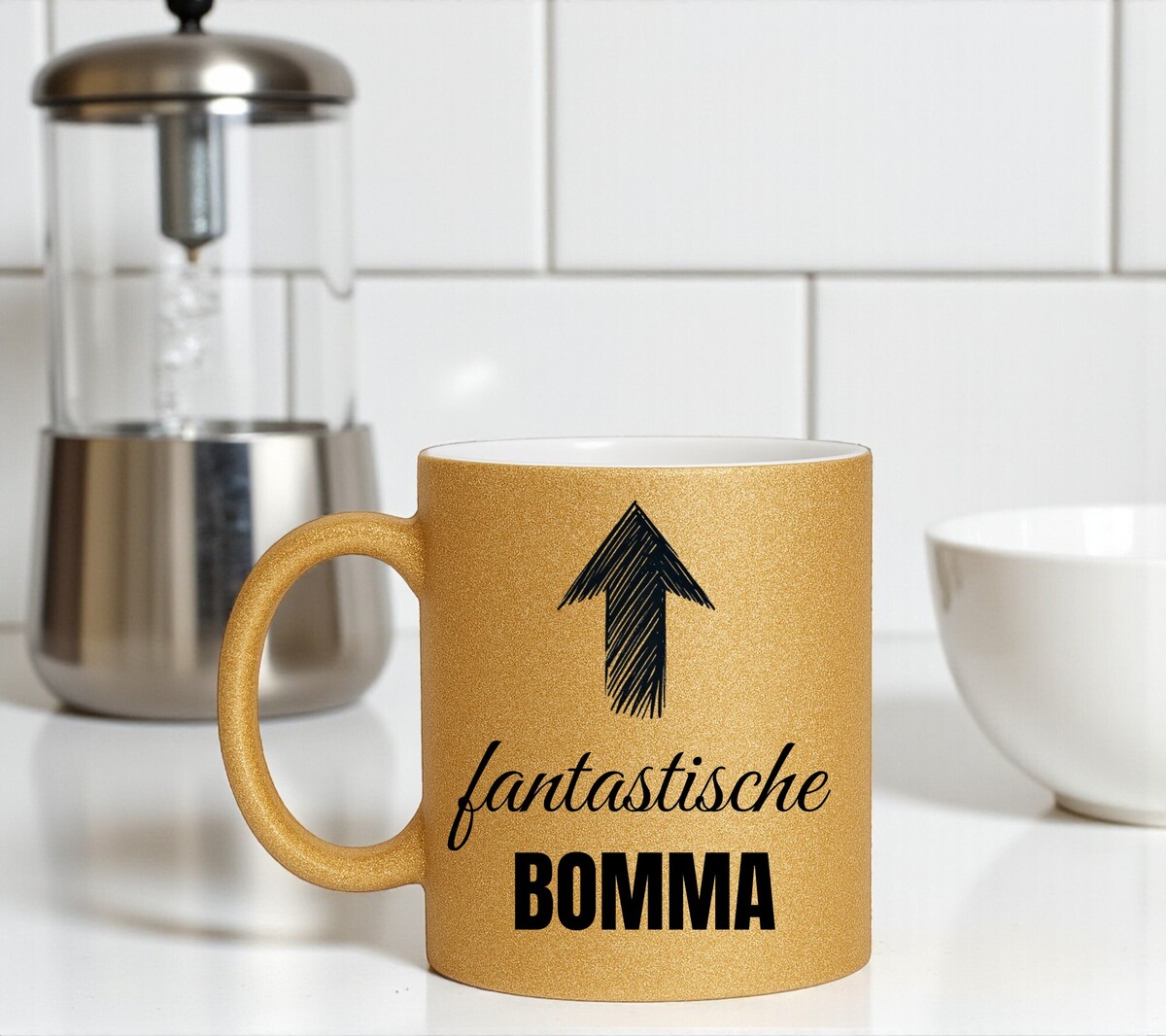 Geweldige gouden glitter mok voor een fantastische bomma.