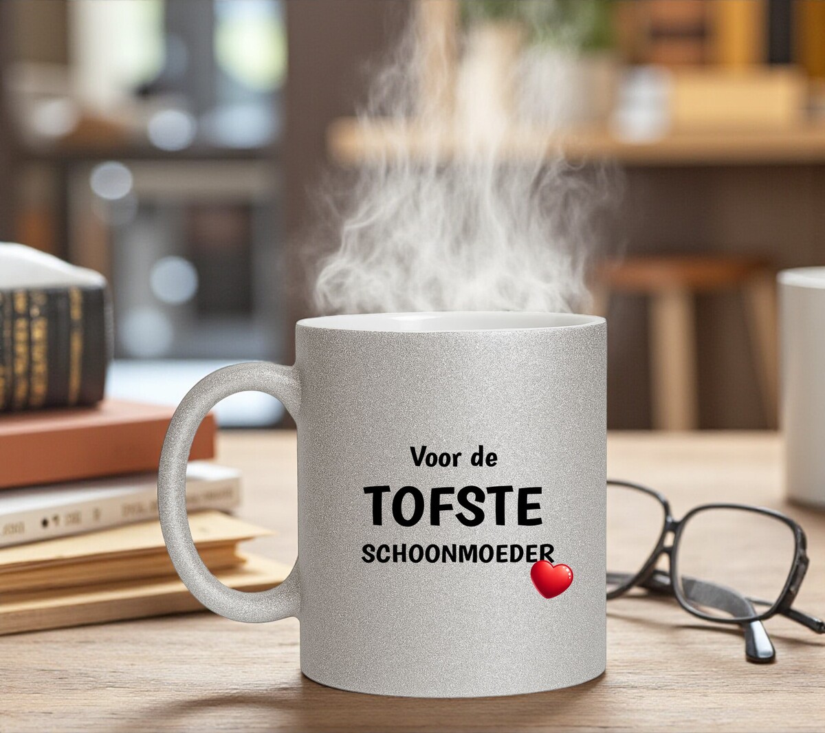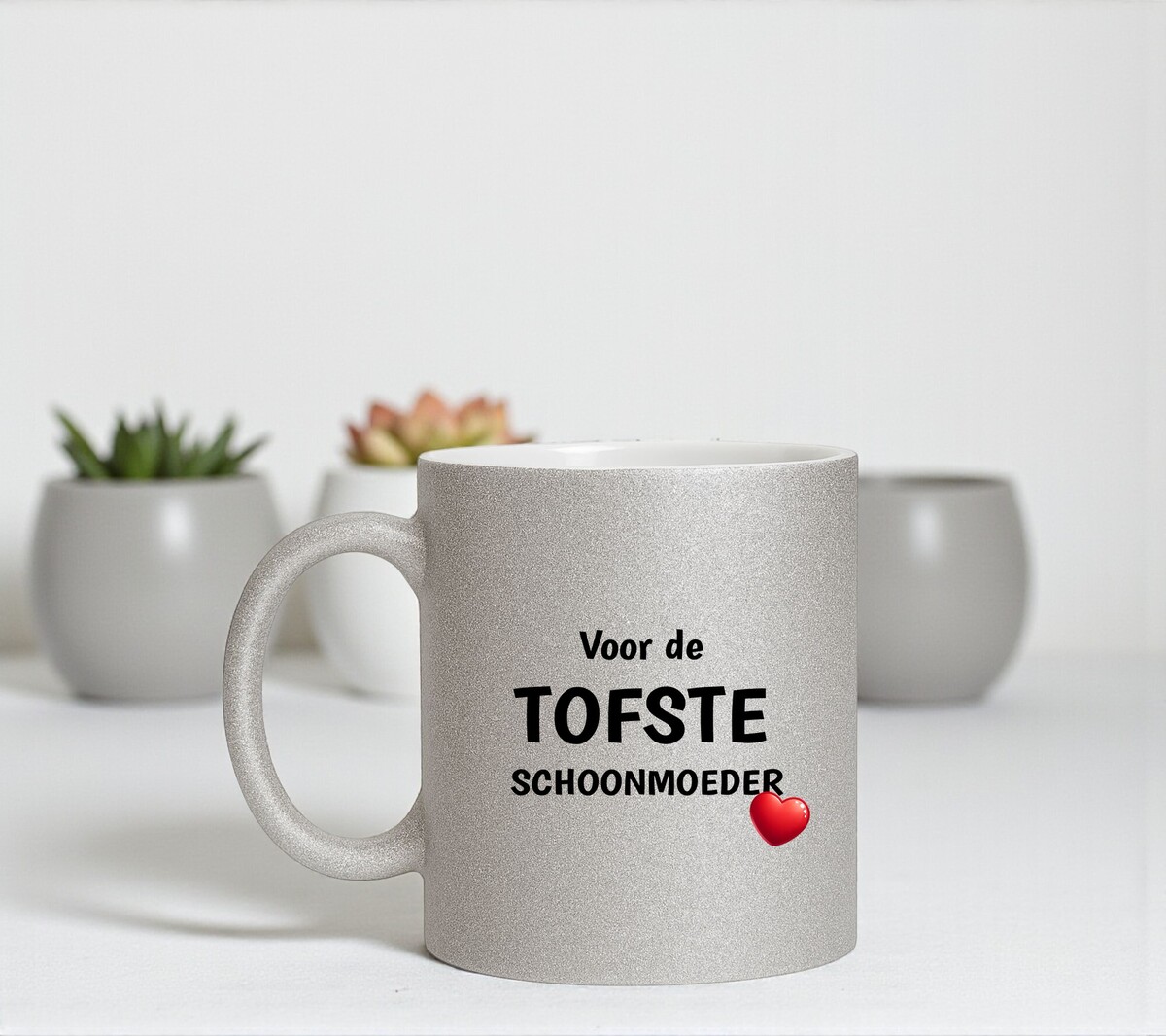 Laat haar elke slok beginnen met een glimlach dankzij deze sprankelende zilveren glitter mok. De chique glans en de vrolijke tekst Tofste Schoonmoeder maken dit cadeautje niet alleen uniek, maar ook hartverwarmend. Of het nu voor haar verjaardag, Moederdag, kerst of gewoon zomaar is—met deze mok geef je iets dat elke dag opnieuw zegt: “Jij bent bijzonder!