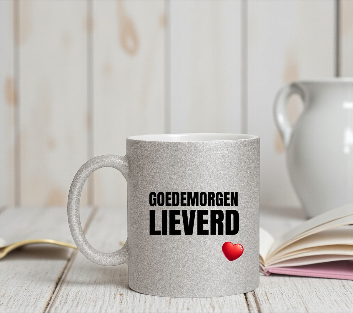 Kortom, dit is niet zomaar een mok. Het is een klein moment van liefde, elke ochtend opnieuw. Goedemorgen lieverd met een beetje glitter wordt elke dag mooier.