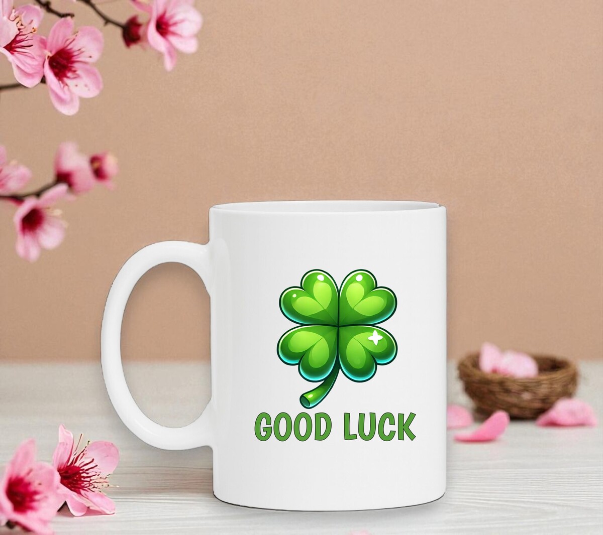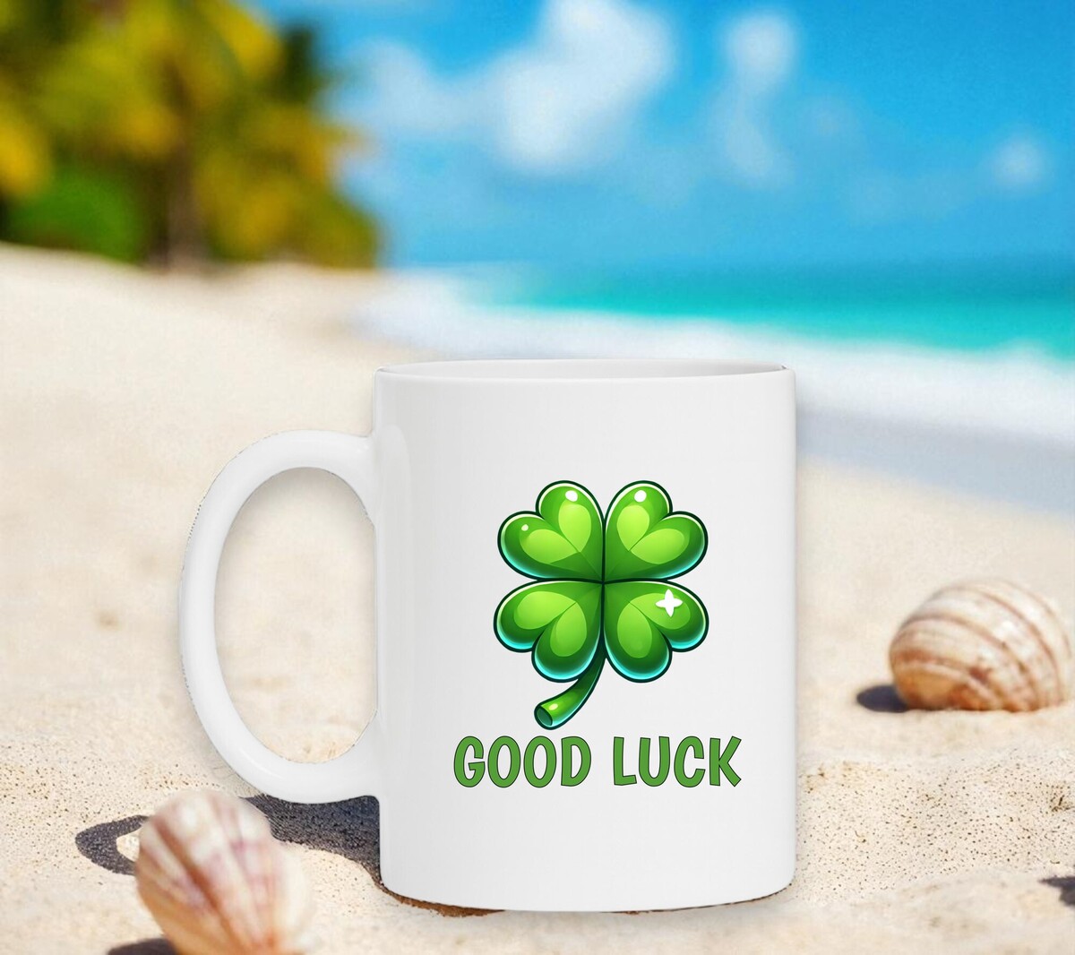 Een leuke koffiemok om iemand succes te wensen. De koffiemok is voorzien van de tekst : luck day en daarboven is een klavertje vier gedrukt!