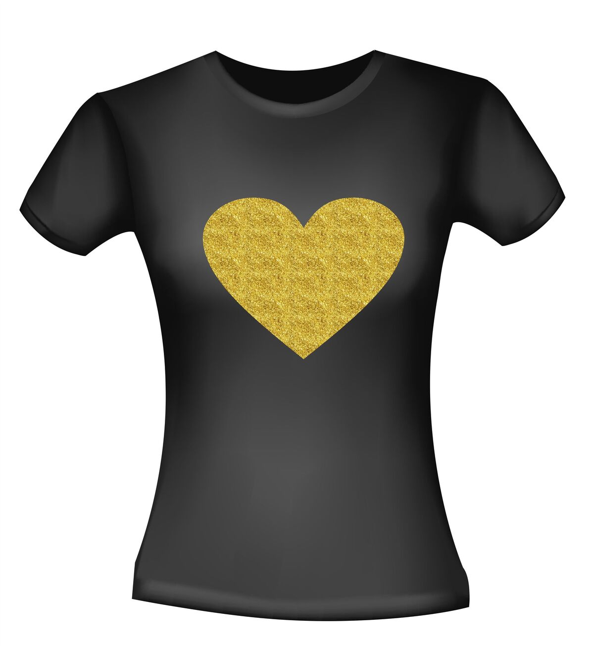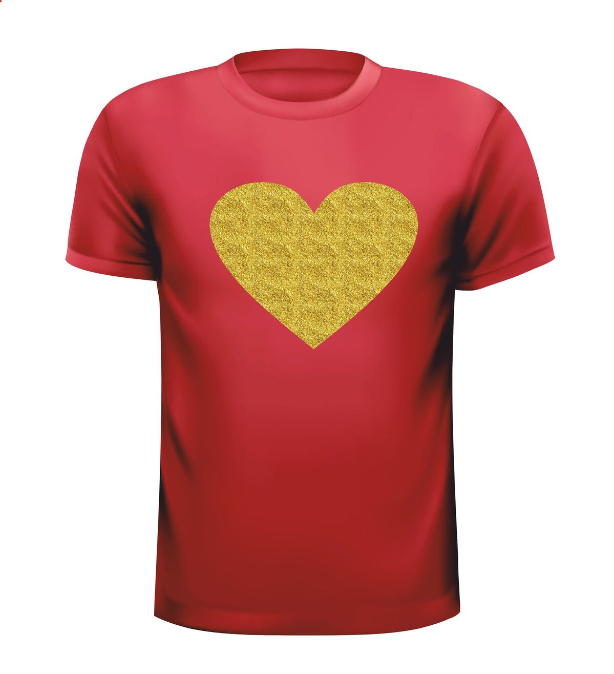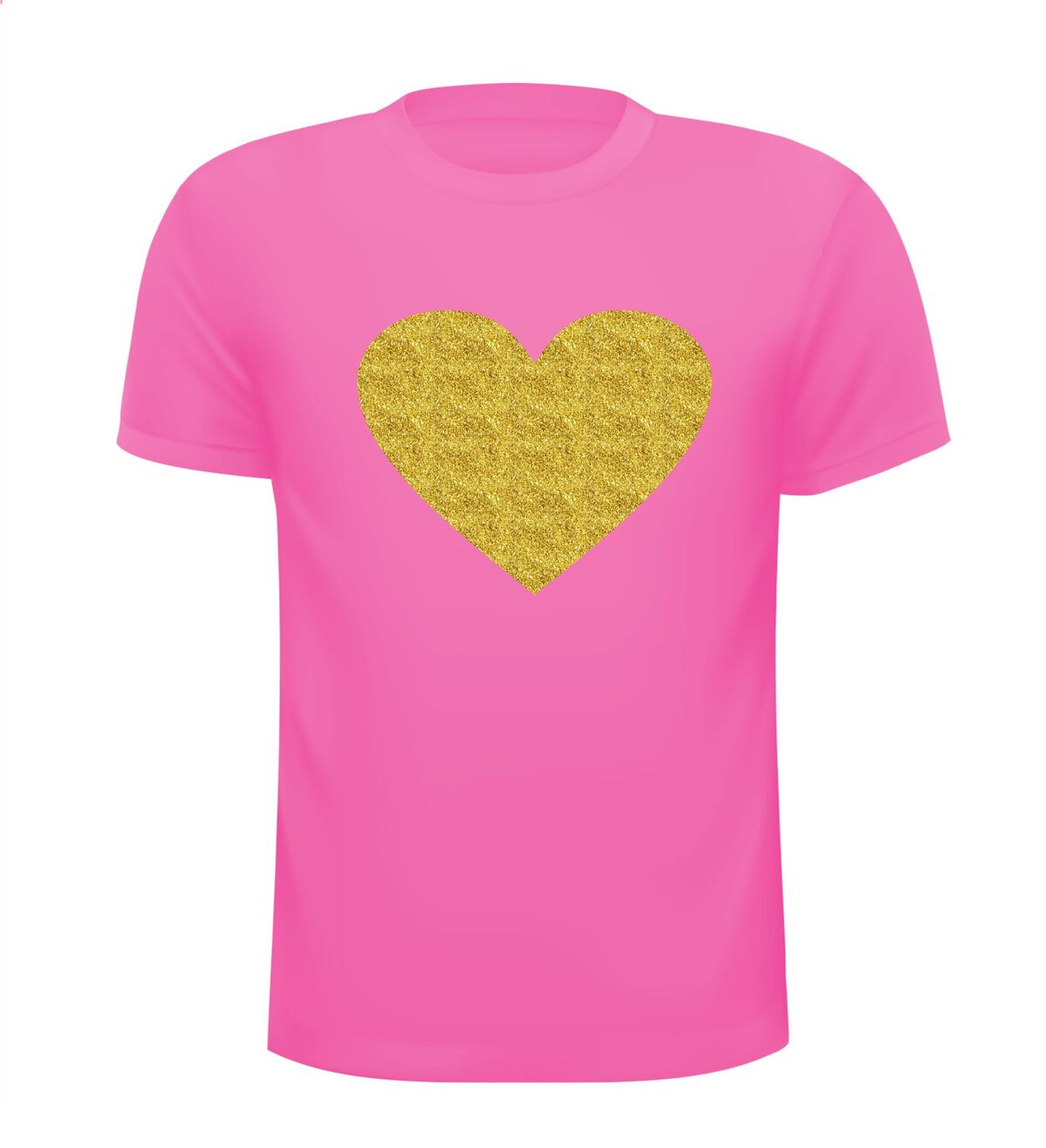 Laat jouw hart spreken en glinsteren met dit prachtige gouden glitterhart shirt.