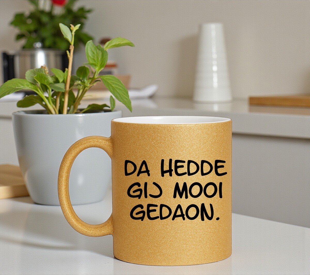 Gouden glitter mok Da hedde gij mooi gedaon!