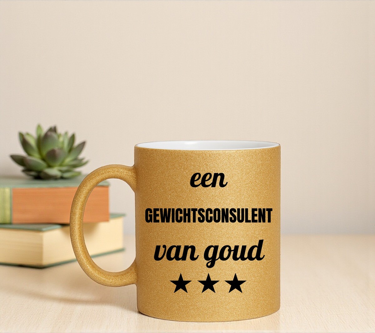 Een prachtig kado voor een gewichtsconsulent van goud! Erg Leuk om de gouden glitter mok cadeau te geven.