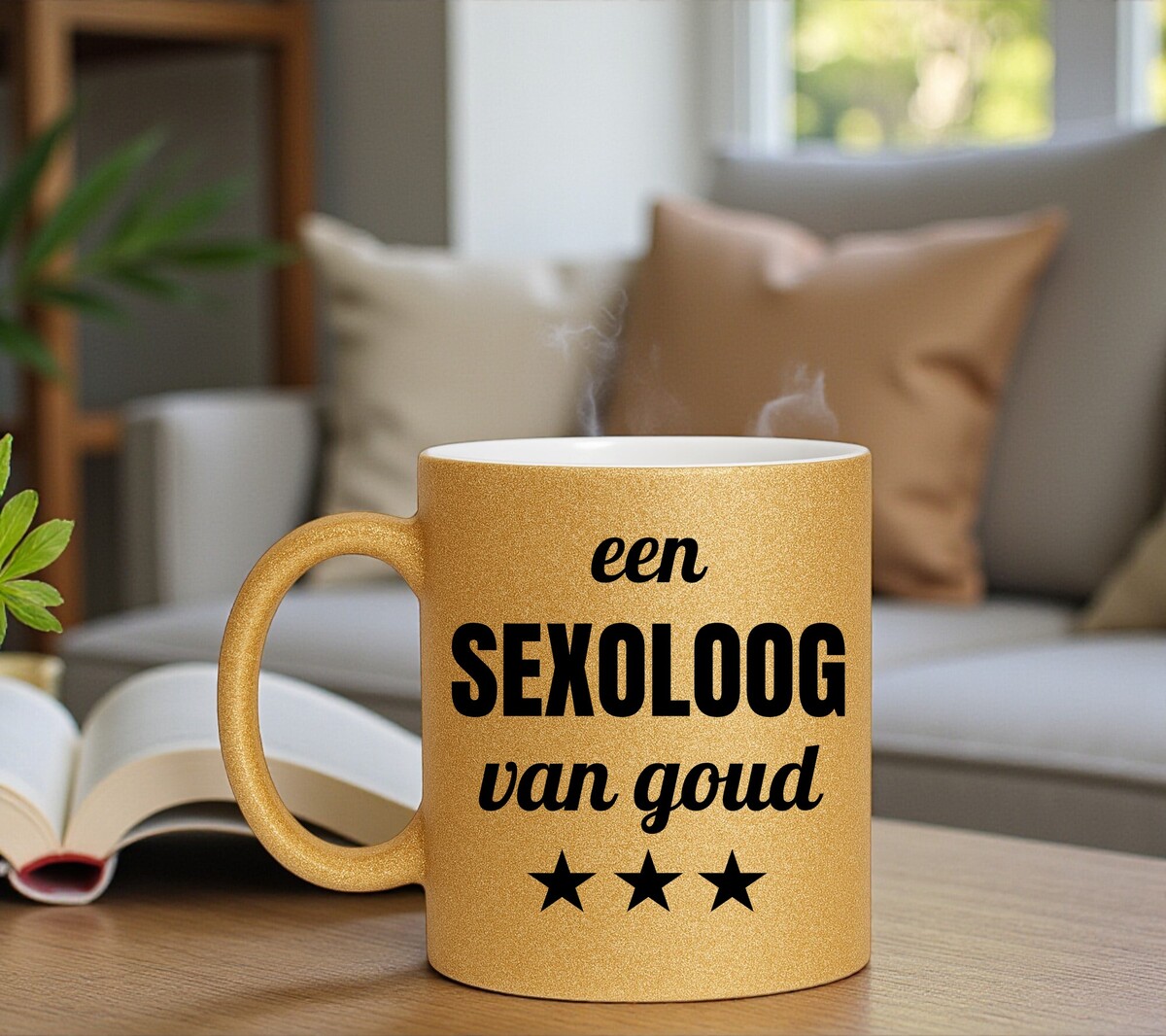 Een prachtig kado voor een sexoloog van goud! Erg Leuk om de gouden glitter mok cadeau te geven. De mok is gemaakt van wit keramiek en is aan de buitenkant volledig bedekt met gouden glitters.