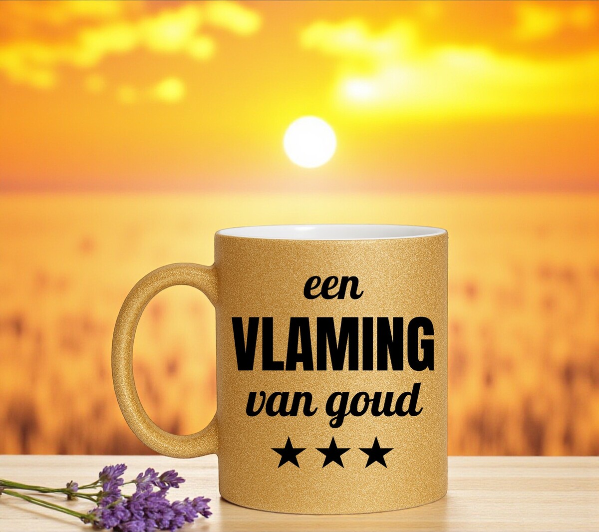 Een prachtig kado voor een vlaming van goud! Erg Leuk om de gouden glitter mok cadeau te geven.