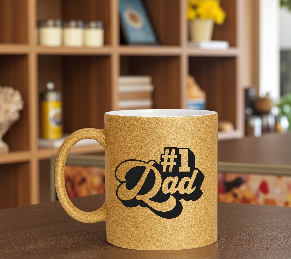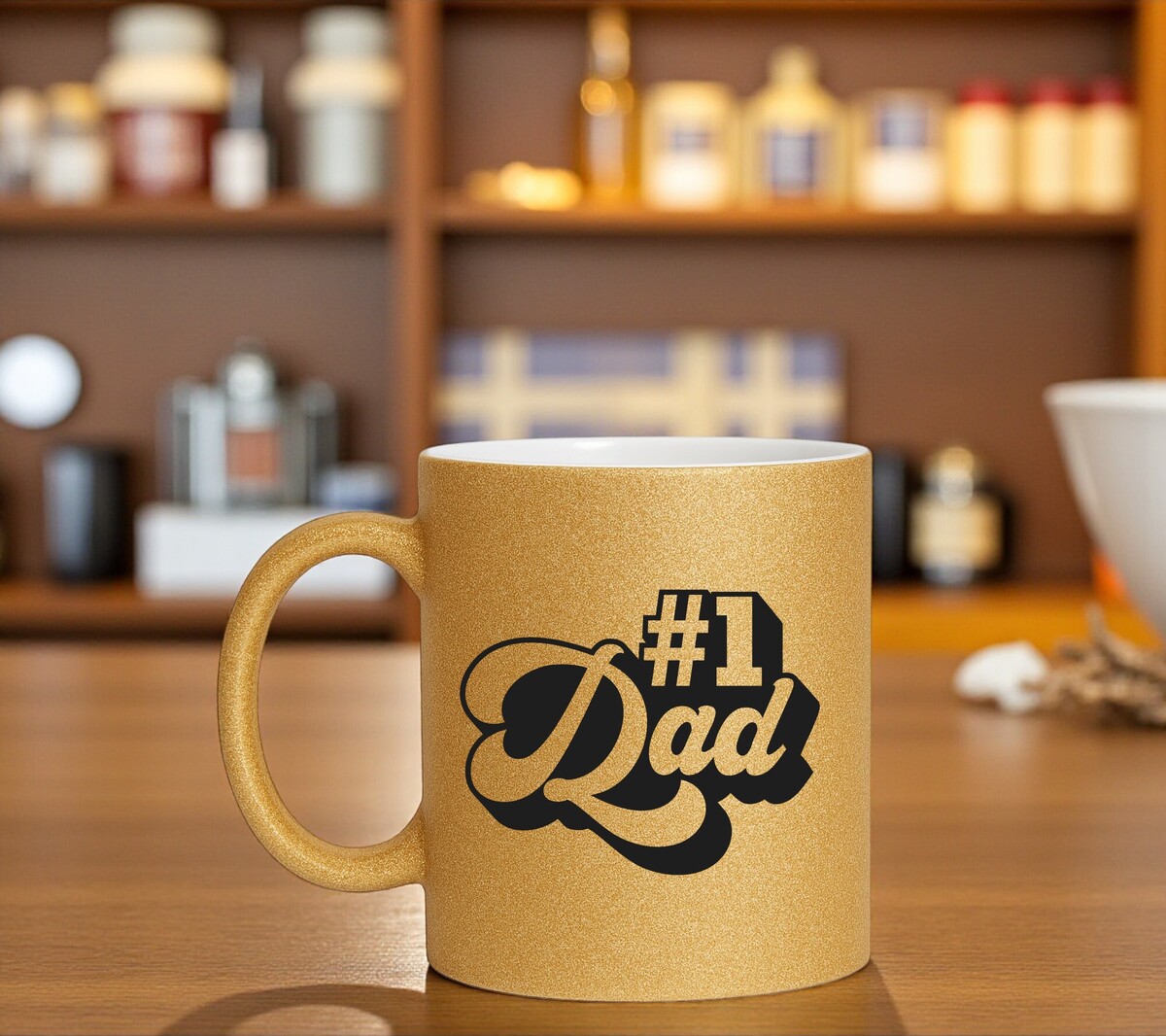 Een super leuk Vaderdag kado. Gouden vaderdag mok glitters nummer one dad.