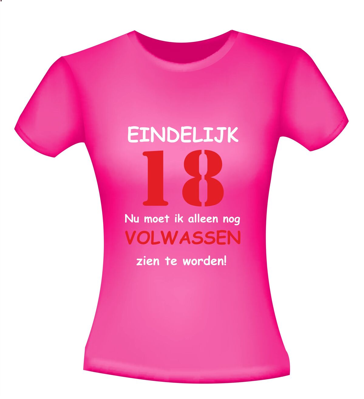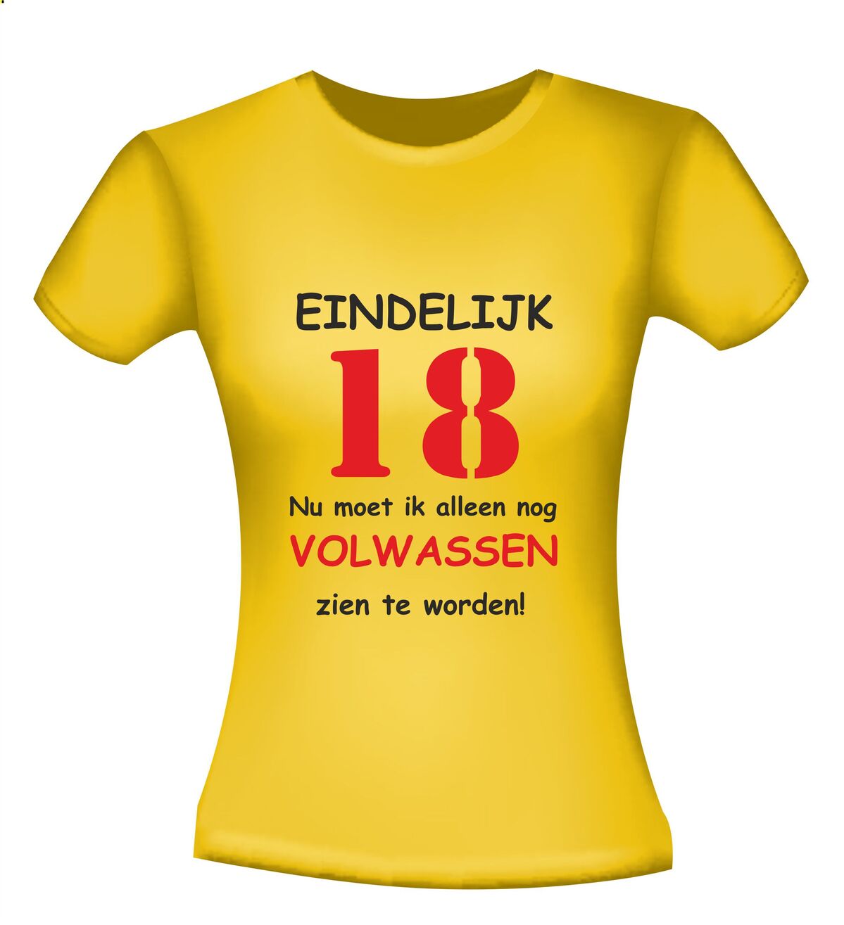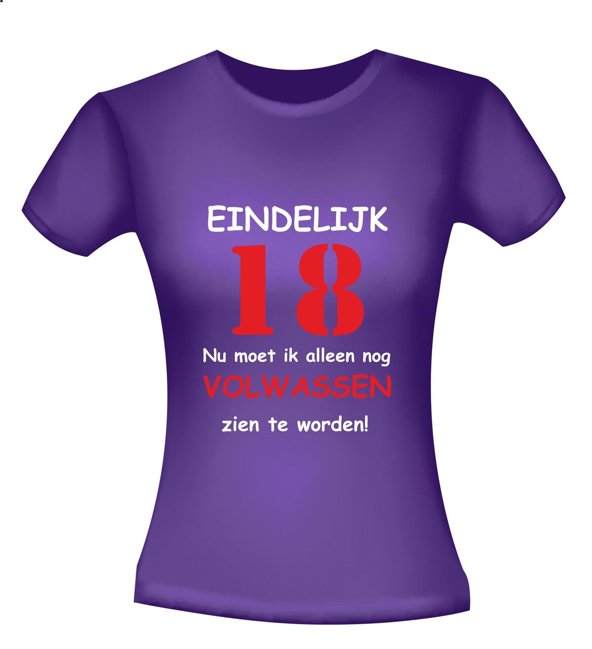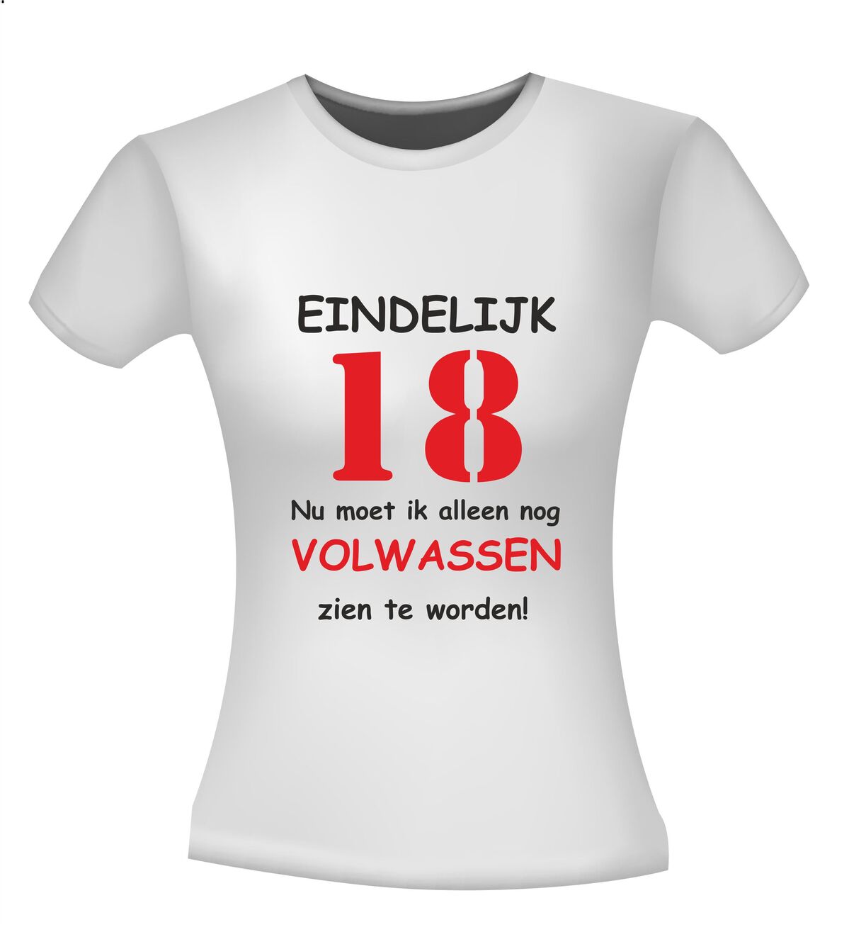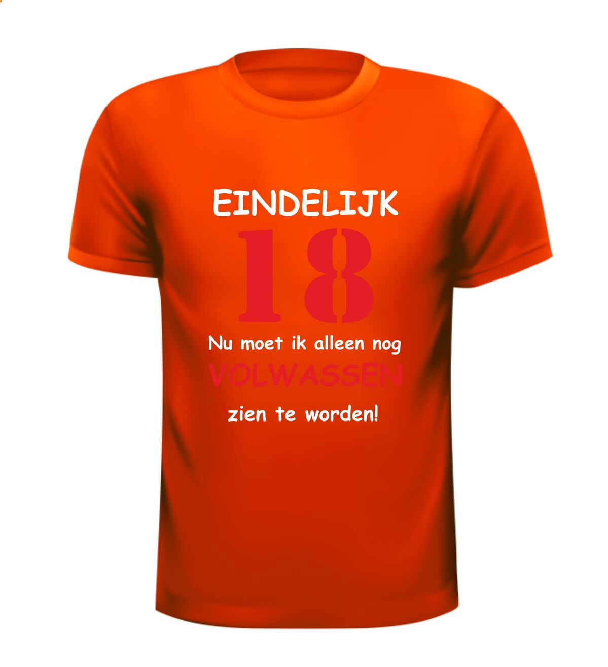Dit T-shirt met de tekst: Eindelijk 18 jaar, nu moet ik alleen nog volwassen zien te worden, is het perfecte shirt voor een 18e verjaardag met humor. Achttien worden is een grote mijlpaal en met dit grappige 18 jaar T-shirt laat je zien dat volwassen worden misschien nog even mag wachten. Ideaal voor een verjaardagsfeest, examenfeest of als opvallend outfit op de grote dag.